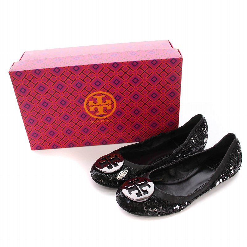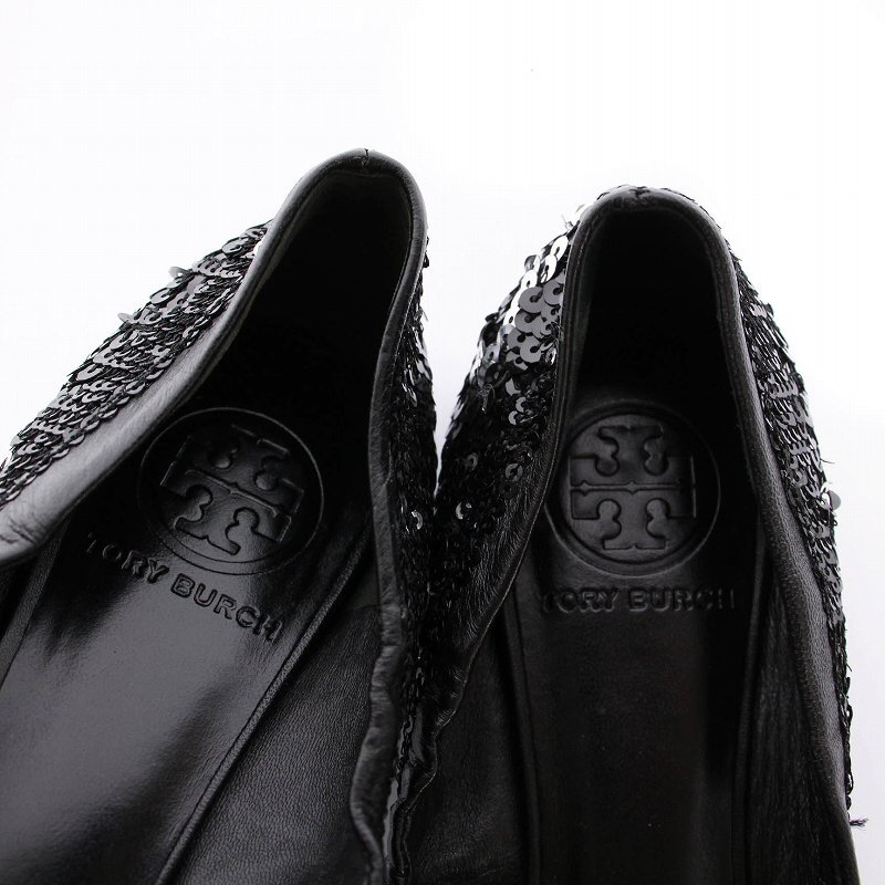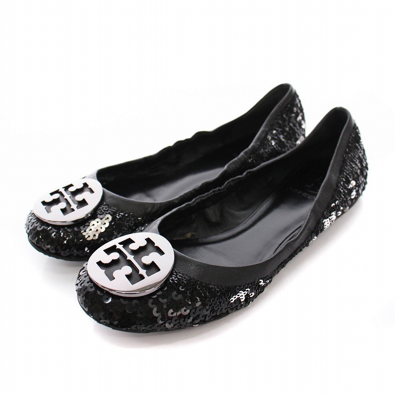 トリーバーチ TORY BURCH パンプス フラット バレエシューズ スパンコール 6M 黒 /YM レディース