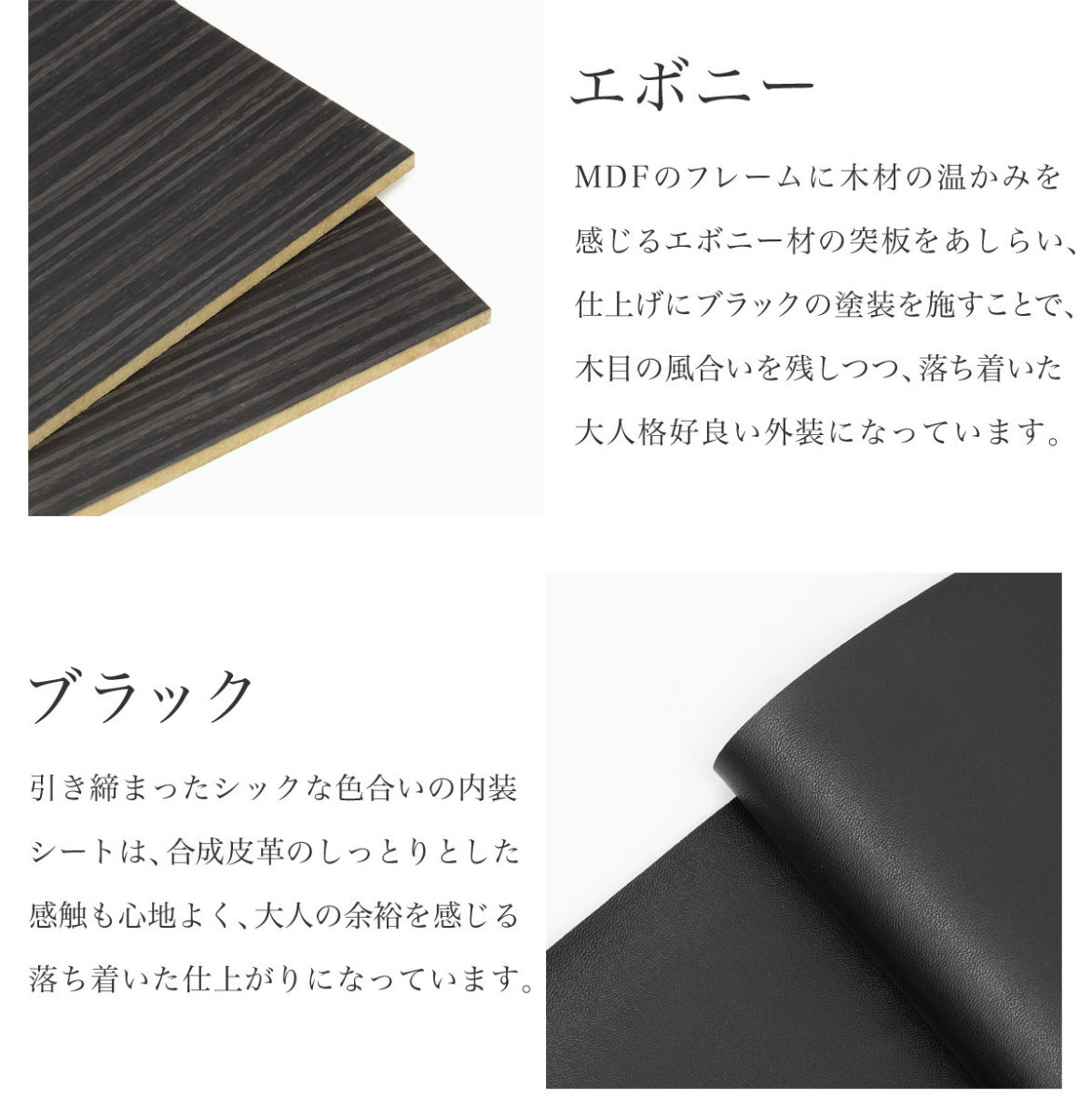 | 素 材 | 外装:エボニー材(天然木突板/ウレタン塗装)、内装:合成皮革 |
