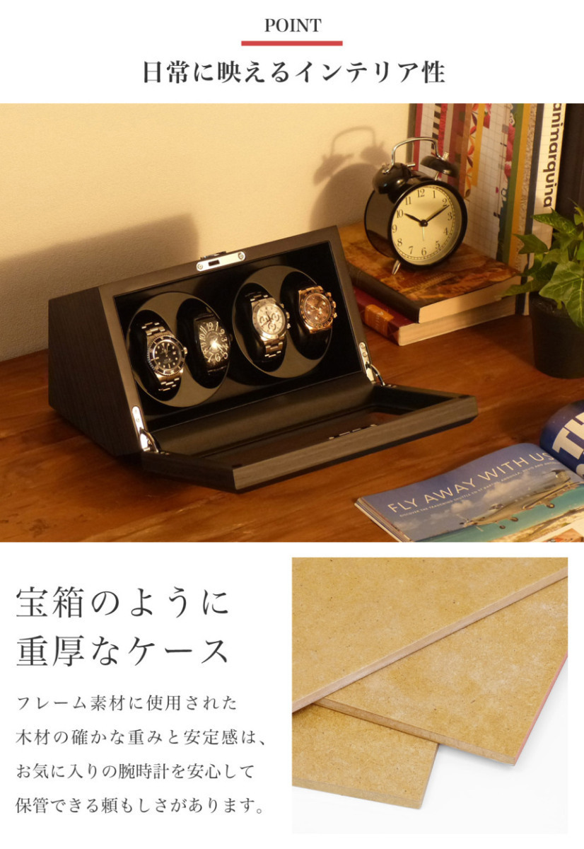 | 注意事項 | * 本製品機能は自動巻き腕時計用となります。クォーツ(電池式)時計や手巻き時計には使用しないで下さい。 また、アンティーク時計等、ゼンマイの巻き過ぎ防止機構のない自動巻き腕時計にご使用された場合、故障の原因となる場合がございます。腕時計の仕様が不明な場合は事前にご購入頂きました店舗様等にお問い合わせ下さい。 * 時計のコンディション(オーバーホールを長い間していない等)や種類により巻きが甘くなったり、巻けない場合がございます。 * ケースの厚みが15mm以上の場合、本体に設置できない場合がございます。 * 商品はワインディングマシーンのみとなります。時計は付属致しません。 * ご使用のモニターにより、色味が若干異なる場合があります。 * 製品の仕様は予告なく変更になる場合がございます。 * 沖縄は配送不可となります。 * 北海道へのお届けの場合は別途送料(1,100円)が個数分必要となります。 |