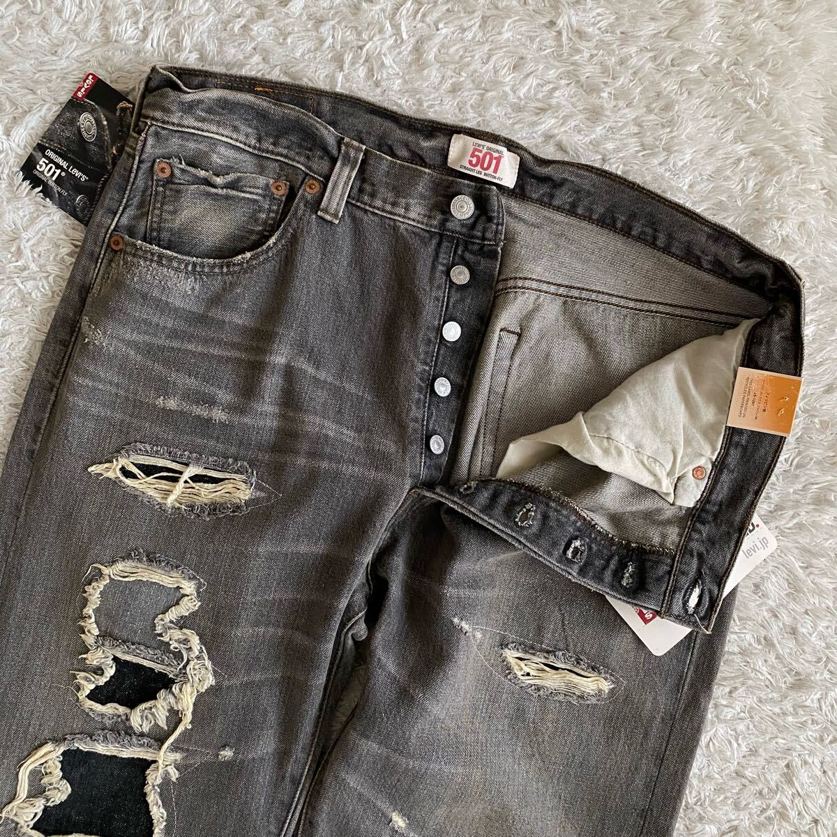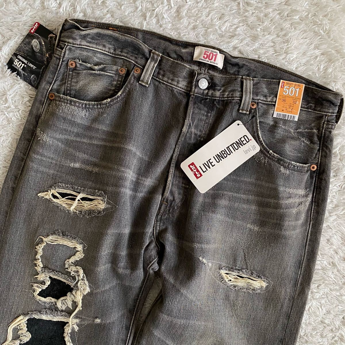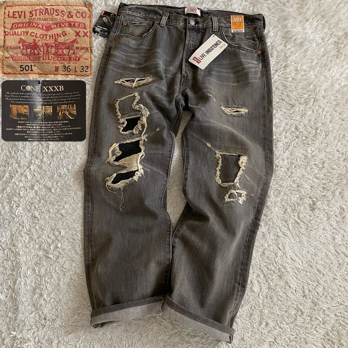 08501-01 501 先染めブラック 黒 キムタクモデル 木村拓哉 CONE XXXB DENIM WHITE OAK コーンミルズ社 ホワイトオーク工場 コーンデニム ダメージ&リペア加工 USED加工 ヴィンテージ加工 ビンテージ ユーズド加工 クラッシュ グランジ デニム ジーパン Gパン ジーンズ パンツ ボトムス