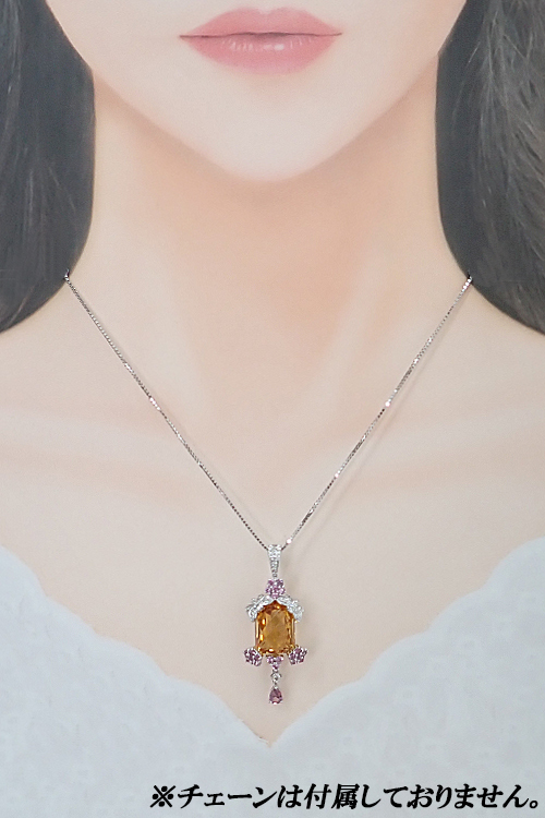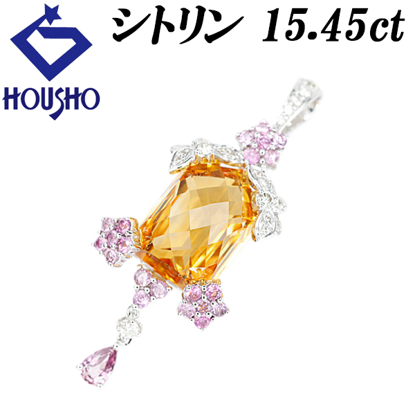 商品名 シトリン ペンダントトップ ダイヤモンド ピンクサファイア K18ホワイトゴールド 花 フラワー 植物 ボタニカル 揺れる