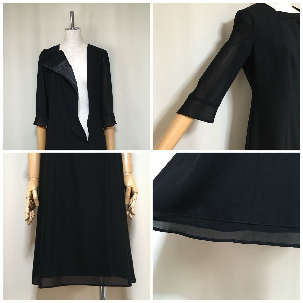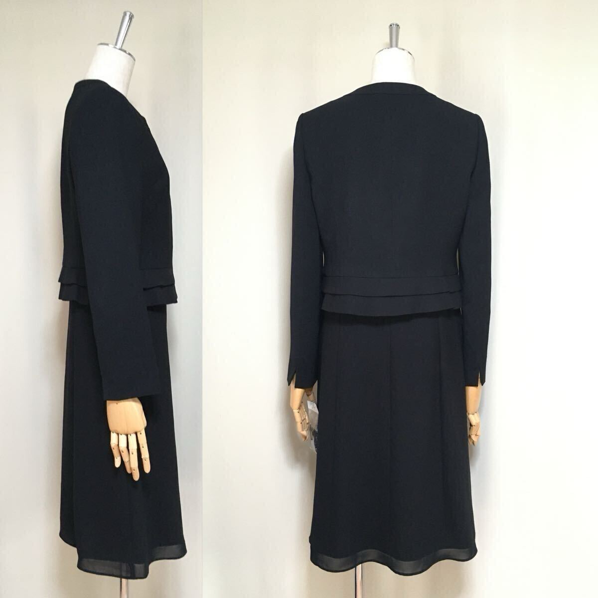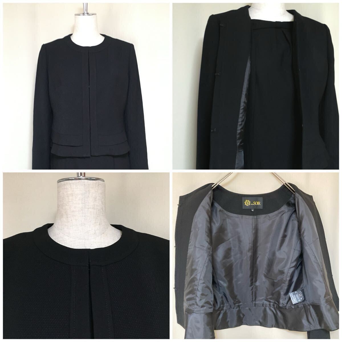 極美品◇東京ソワール ブラックフォーマル セットアップ ワンピーススーツ ノーカラージャケット 9号/Mサイズ相当 黒 喪服 冠婚葬祭 前開き