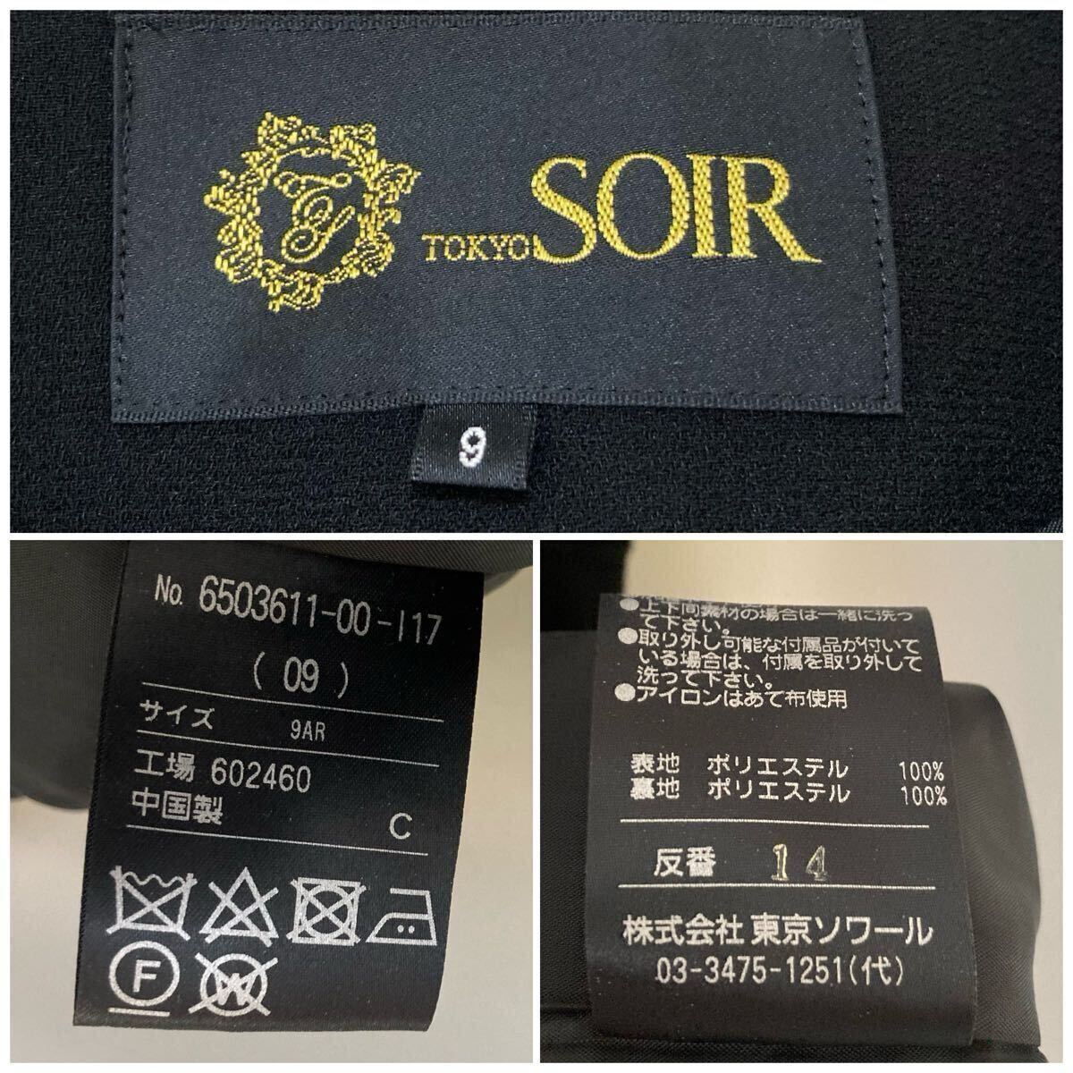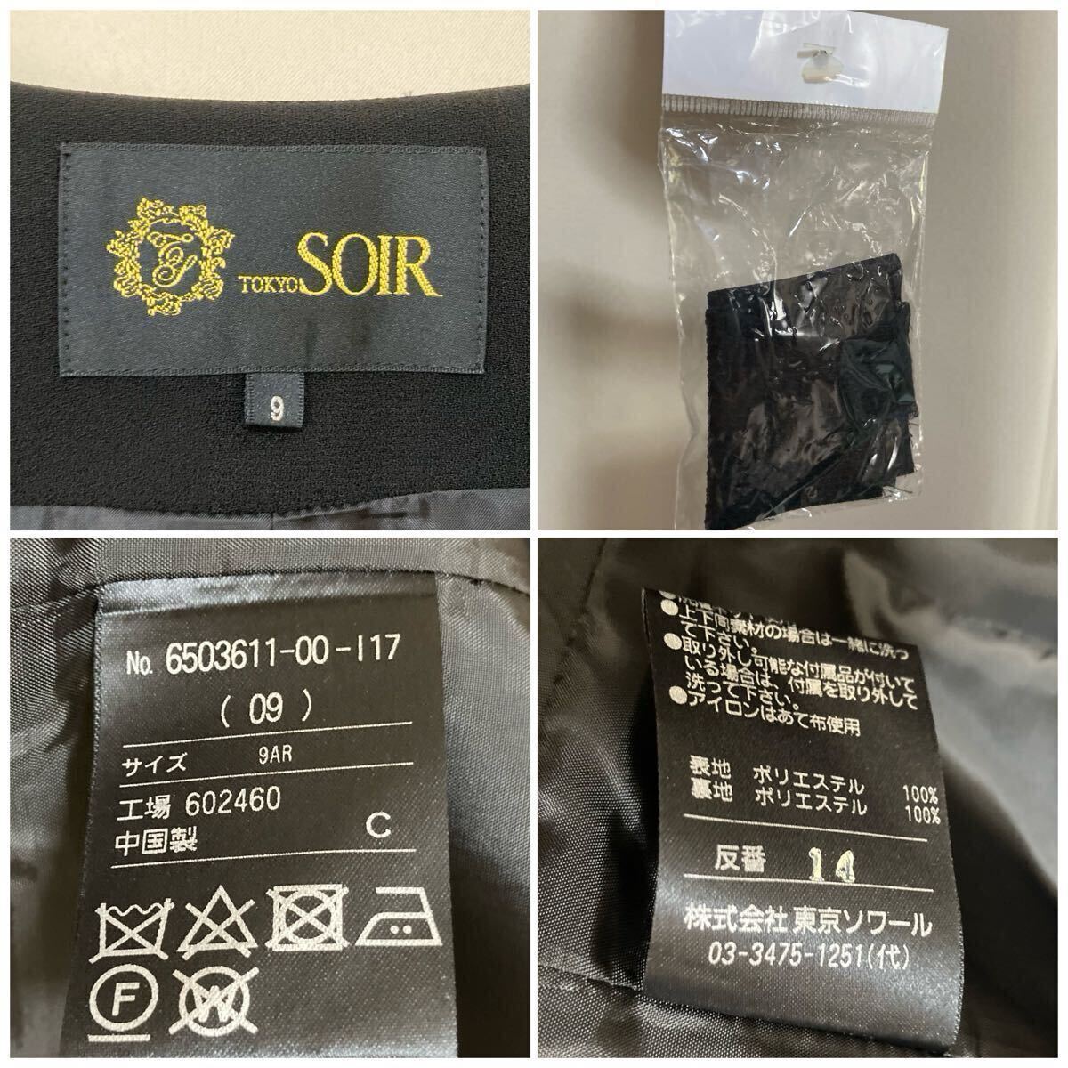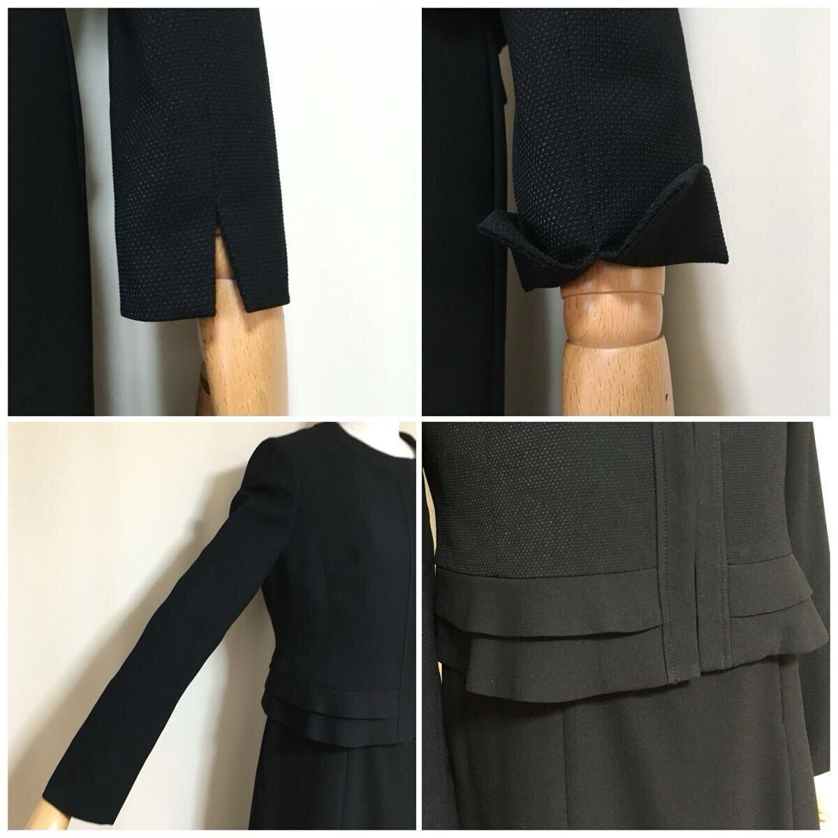 極美品◇東京ソワール ブラックフォーマル セットアップ ワンピーススーツ ノーカラージャケット 9号/Mサイズ相当 黒 喪服 冠婚葬祭 前開き
