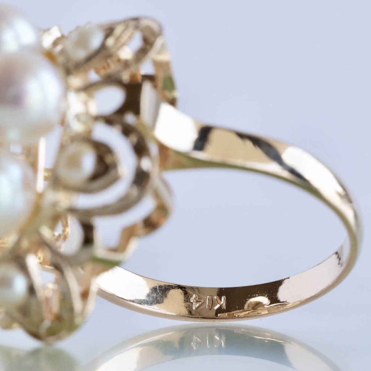 K14 YG あこや真珠 ベビーパール 彫金 リング フリル