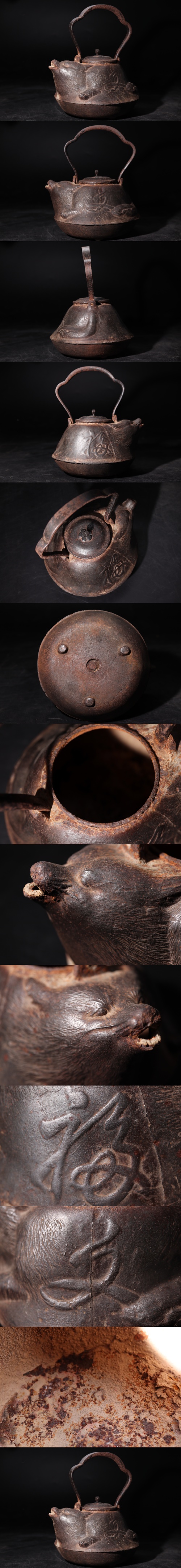 | 時代 鉄瓶 「 狸 茶釜 」 ぶんぶく茶釜/分福茶釜 急須 容量約1000ml / 湯沸かし 茶器 煎茶道具 .G2056 |