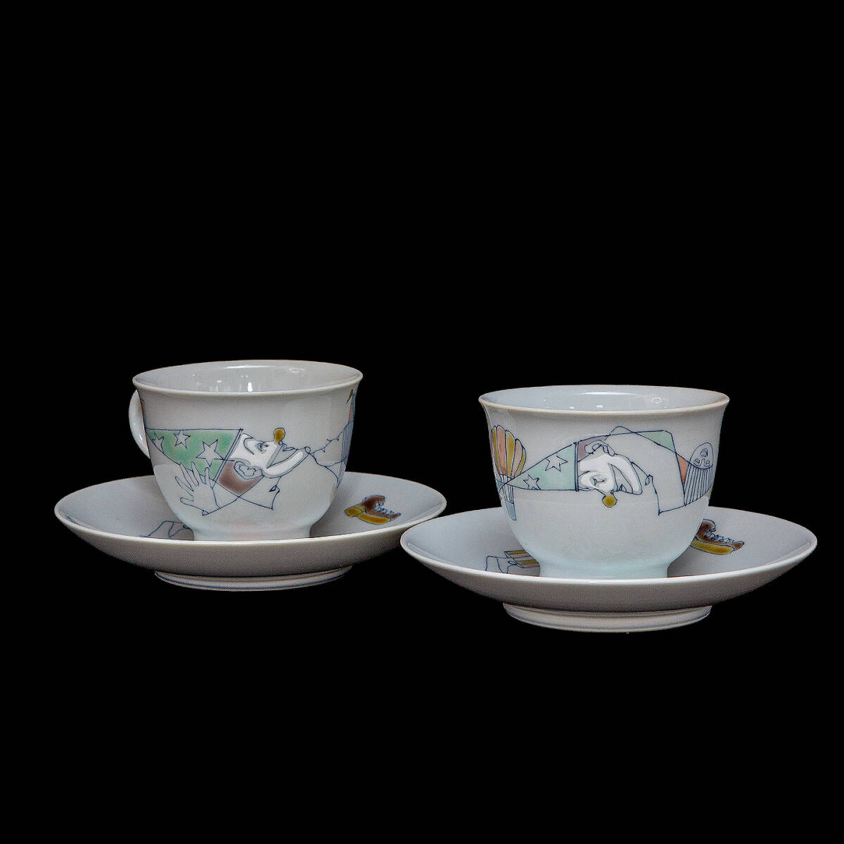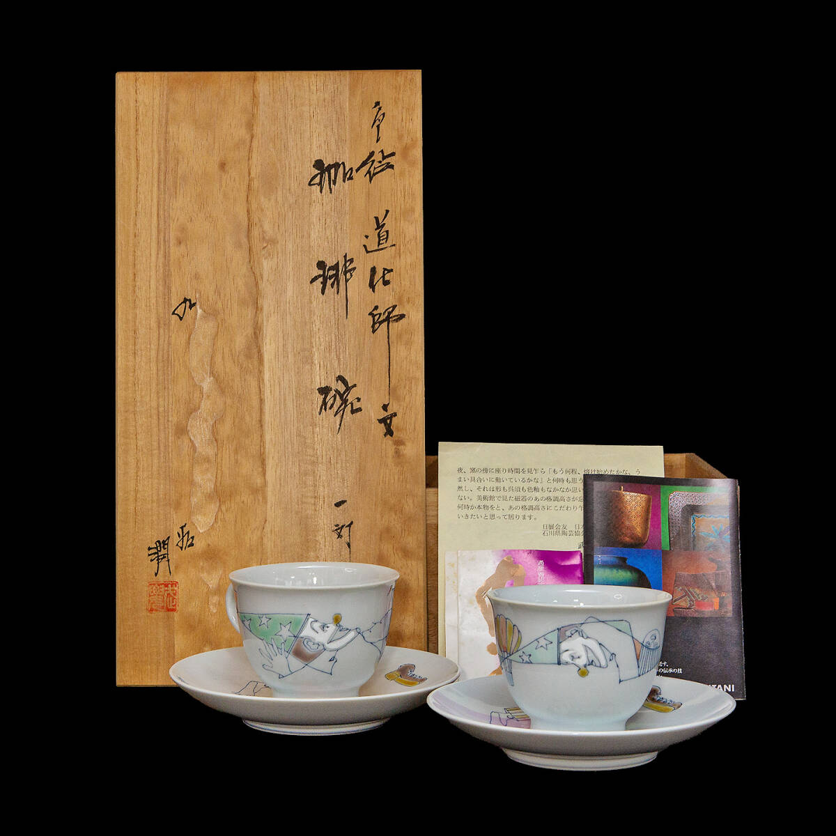 | 商品説明 | 京都⑧◆ 九谷焼 武腰潤 造 色絵 道化師文 珈琲碗 2客セット カップ & ソーサー 共箱 栞 ■商品説明■ 本品は個人保管品として出品しております。 こちらは武腰潤造の色絵道化師文珈琲碗2客セットです。 保管品の為、傷・汚れ等ございます。 出来る限り写真を撮影しておりますので、ご覧の上ご了承の上ご入札下さい。 ■付属品■ 共箱、栞 その他画像のものが全てとなります。 ■サイズ■ (カップ) 口径 : 約8cm 幅 : 約11cm