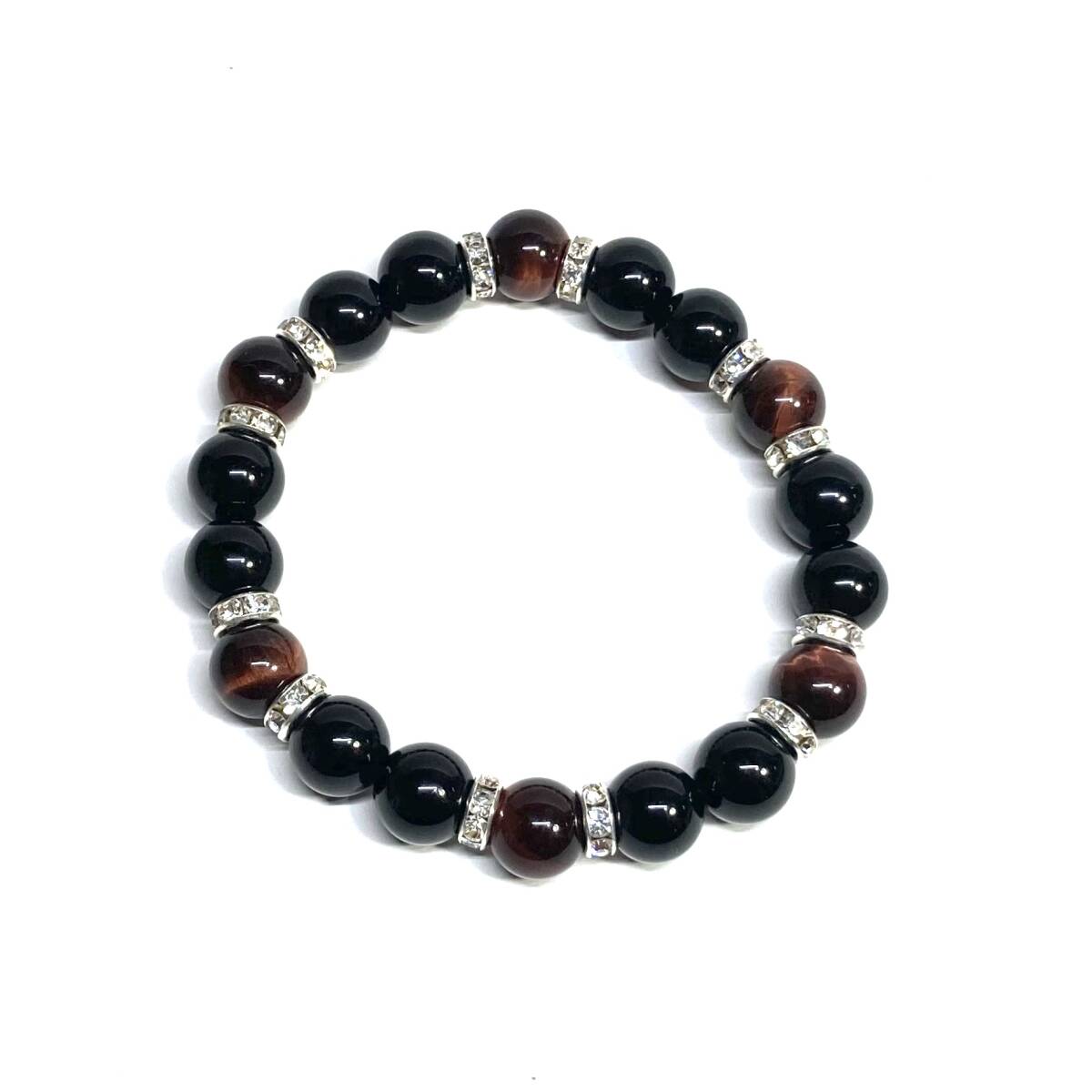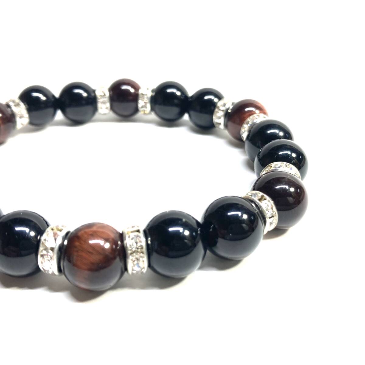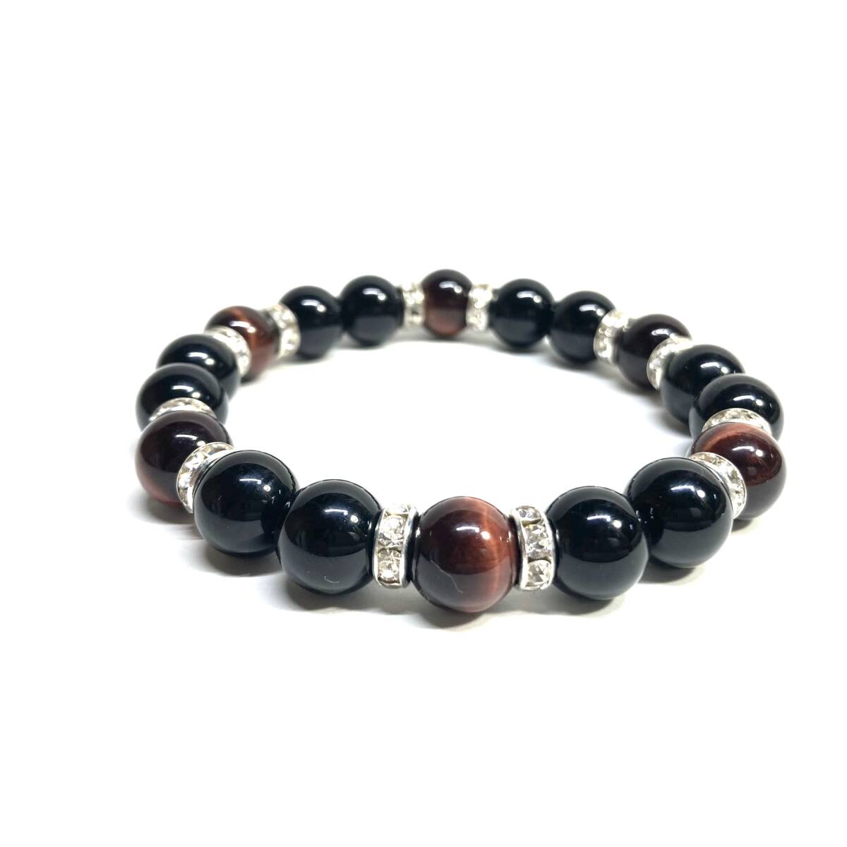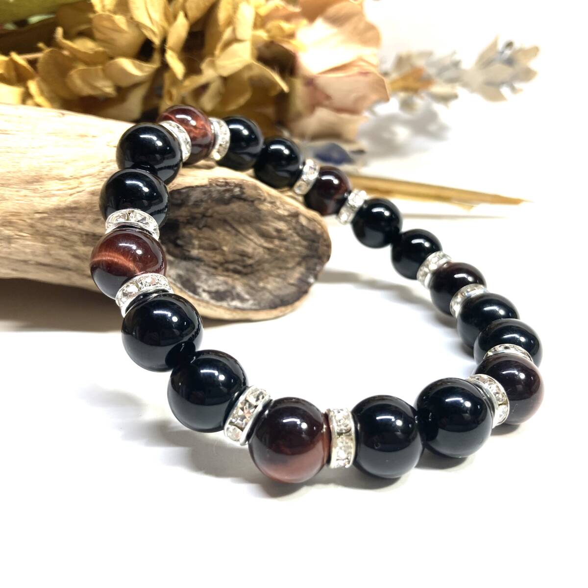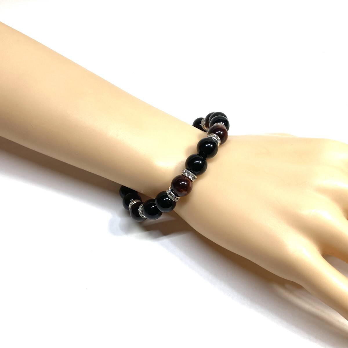 モリオン&レッドタイガーアイ パワーストーン ブレスレット 天然石ブレス (シルバー) 10mm メンズ・レディース 厄除け 金運 ☆