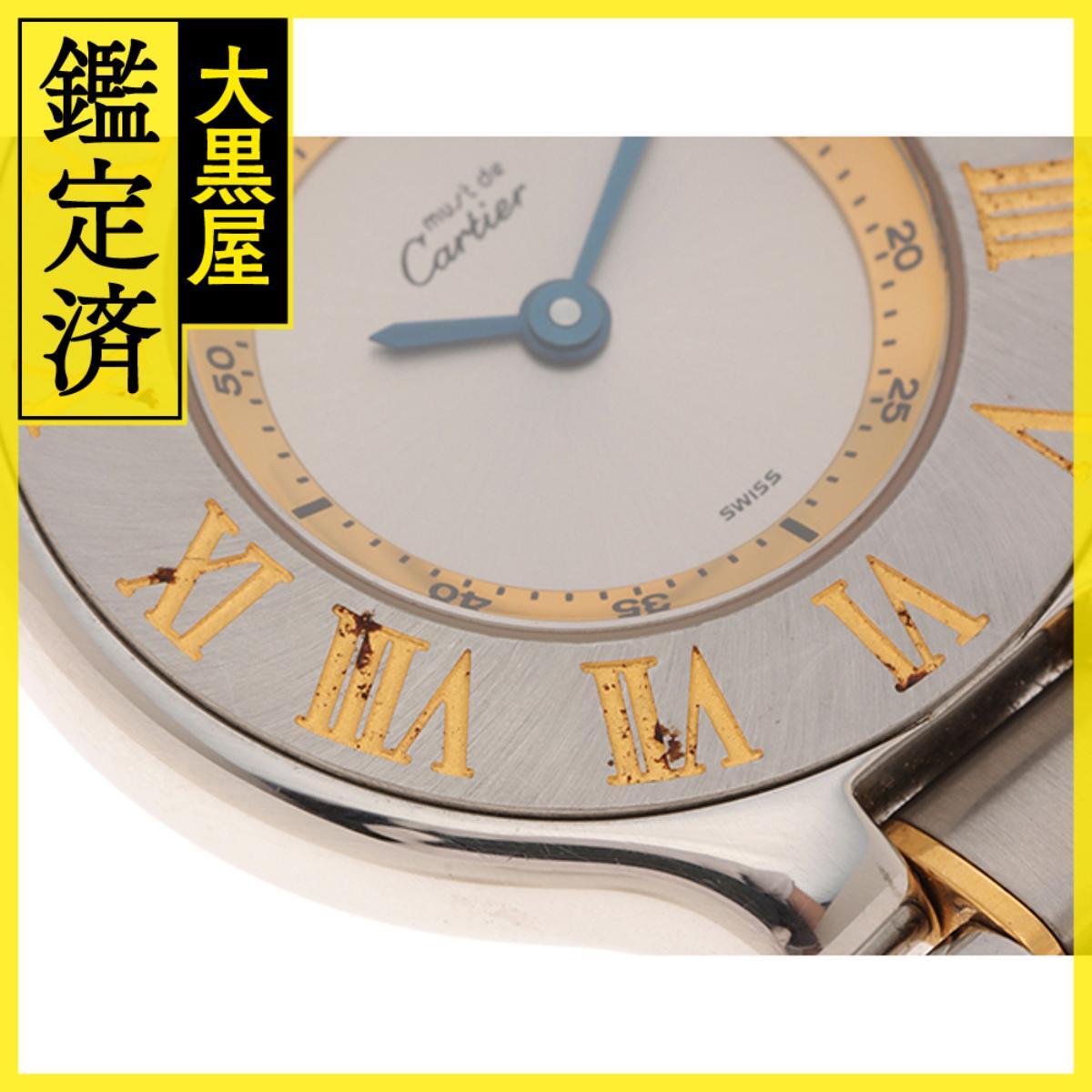 | 詳細 | 【商品コード】214813871474 【ブランド名】カルティエ 【モデル名】マスト21SM 【モデル番号】W10073R6 【素材】YG/SS 【ムーブメント】クオーツ 【文字盤カラー】シルバー文字盤 【サイズ】ケース径:28(mm)リューズ含まず / 腕周り:内径最大約17.5(cm) 【保証】弊社規定6ヵ月保証(ご購入日より6か月間) ※税抜50,000円未満は保証対象外 ※ムーブメント自然故障のみ保証対象 ※破損・水没・磁気帯び等の外的要因は保証対象外 ※保証は日本国内でご購入されたお客様に限らせていただきます。 【修理履歴】無し 【付属品】箱(外箱ダメージ)・保証(印無し) 【ランク】中古B 【状態】 風防:欠けなし ベゼル:小傷や擦れ、インデックスに錆 ケース:小傷や擦れ ラグ:小傷や擦れ 裏蓋:小傷や擦れ ブレスレット:細かな擦れ多数 バックル:小傷や擦れ --------------------------------------------------------- 【ご購入前のご注意】 ※メーカー外のメンテナンスを行っている商品の場合は、 正規のメンテナンス等を受けられない場合がございます。 ※弊社でのお取り扱い商品は全て一点物となります。 また、弊社でお取り扱う商品は全て中古品(二次流通品)の為、 必ず使用感やダメージ等がございます。 ※中古品という性質上から、全てのダメージを掲載する事はできません。 お客様からのご注文を確認後、 お取り扱い店舗から状態の確認についてご連絡を差し上げる場合がございます。 ※PC、タブレット、スマートフォン等の環境やディスプレイの設定や仕様等によって、 イメージ写真と実際の商品の色合い等が異なる場合がございます。 また、商品や状態に関して気になる点には個人差がございます。 ※弊社では真贋についての保証書等はお付けしておりません。 あらかじめご了承くださいませ。 ※商品についてご不明な点等がございましたら、 必ずご注文前にメールやお電話などで商品のお取り扱い店舗までお問い合わせくださいませ。 ※お客様都合(イメージ違い等)による返品・交換は一切承る事ができかねます。 詳しくは各ECサイトのご利用ガイド等をご確認くださいませ。 --------------------------------------------------------- 【海外のお客様へ】 商品情報内の保証書に記載されている「年」は、購入年を指します。 表示されている販売価格には、関税・輸入税・消費税等は含まれておりません。 配送はDHLにて行います。配送業者の指定は承っておりません。 ご注文いただいた商品は、安全かつ迅速にお届けいたします。 ~・~・~・~・~・~・~・~・~・~・~・~・~・~・~・~・~・~・ 【海外のお客様へのご注意事項】 1.価格表示について 商品ページに記載されている価格は、すべて税抜き(免税)価格です。 税関申告時に、実際の販売価格よりも低い金額での申告はできません。 そのようなご要望にはお応えいたしかねます。 輸入にかかる税金や手数料は、すべてお客様(購入者)のご負担となります。 2.特定の素材に関する制限 ワニ革およびトカゲ革を使用したストラップは、ワシントン条約による輸出制限により、海外発送ができません。 そのため、対象のストラップは商品に付属せず、ストラップなしでの発送となります。 3.配送先について ホテルやその他の一時的な宿泊施設への配送は承っておりません。 | ||