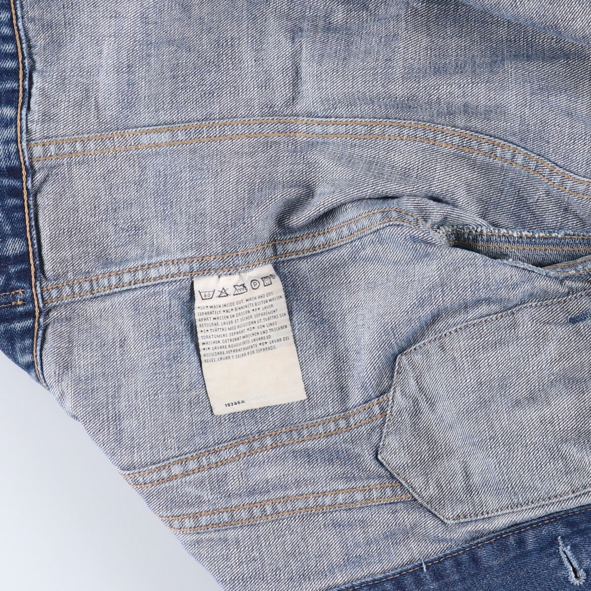 表記サイズ: S 着丈: 56.5cm 身幅: 40.5cm 肩幅: 40cm 袖丈: 60.5cm ![]() | ![]() ランク:C USEDデニムですので使用感、擦れ、色落ちなどございますが、まだまだご愛用していただけます。 古着という事をご理解の上ご注文よろしくお願いします。 【状態追記】 ●前、右腕に擦れ ●後、背中に擦れ ●内側、首周りに汚れ |