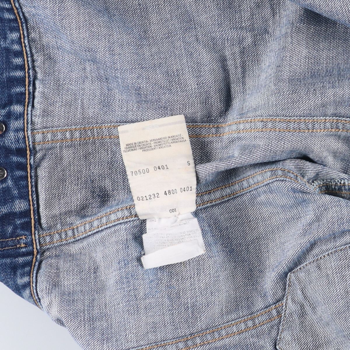 商品名: 古着 リーバイス Levi's 70500 04 ユーロモデル デニムジャケット Gジャン レディースS相当 /eaa528390 【中古】 【250316】 【ADEL/アデル】 ブランド: Levi's リーバイス 特徴: 長袖 / 短丈 ショート丈 モデル/形状: 70500 04 ユーロモデル / デニムジャケット Gジャン 素材: コットン:100% 色: ブルー系 青色 柄: 無地 生産国: クロアチア製 年代: - カテゴリ: レディース ジャケット デニム・コーデュロイジャケット 商品番号: eaa528390 | |