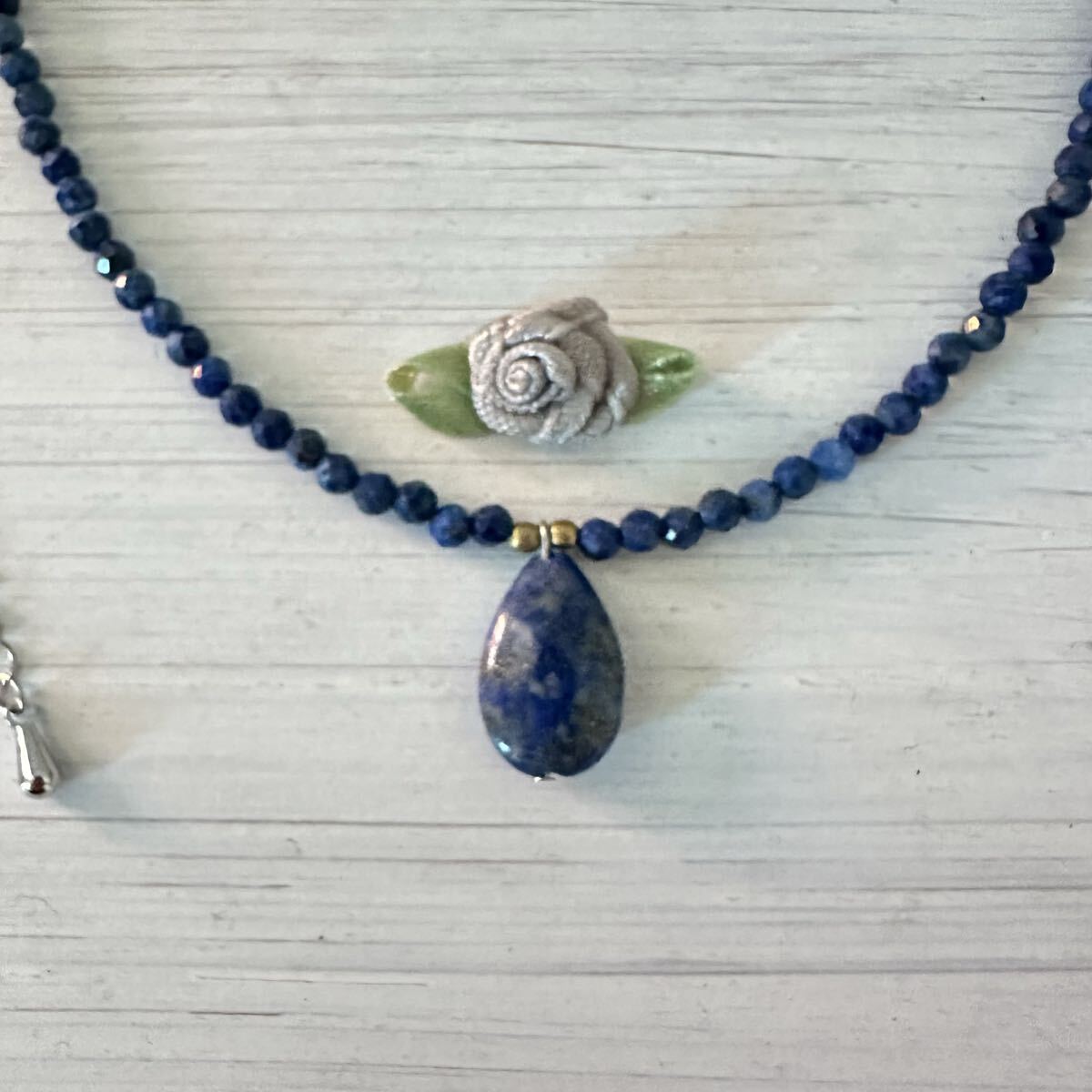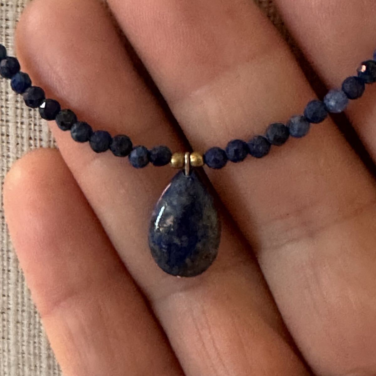 トップも涙型ラピスラズリですしネックレス部分もクリスタルカットが施されているラピスラズリです!!