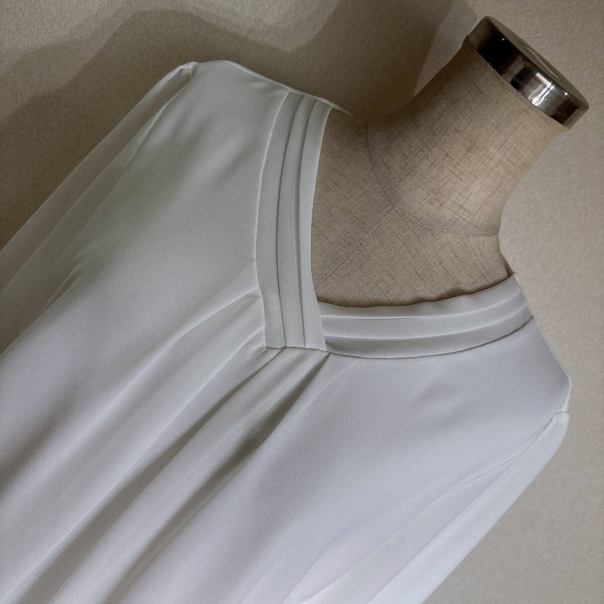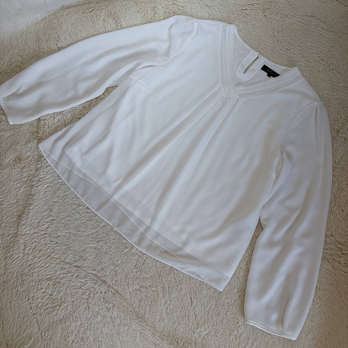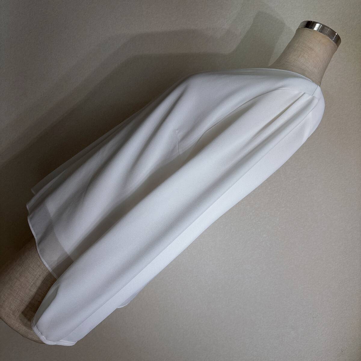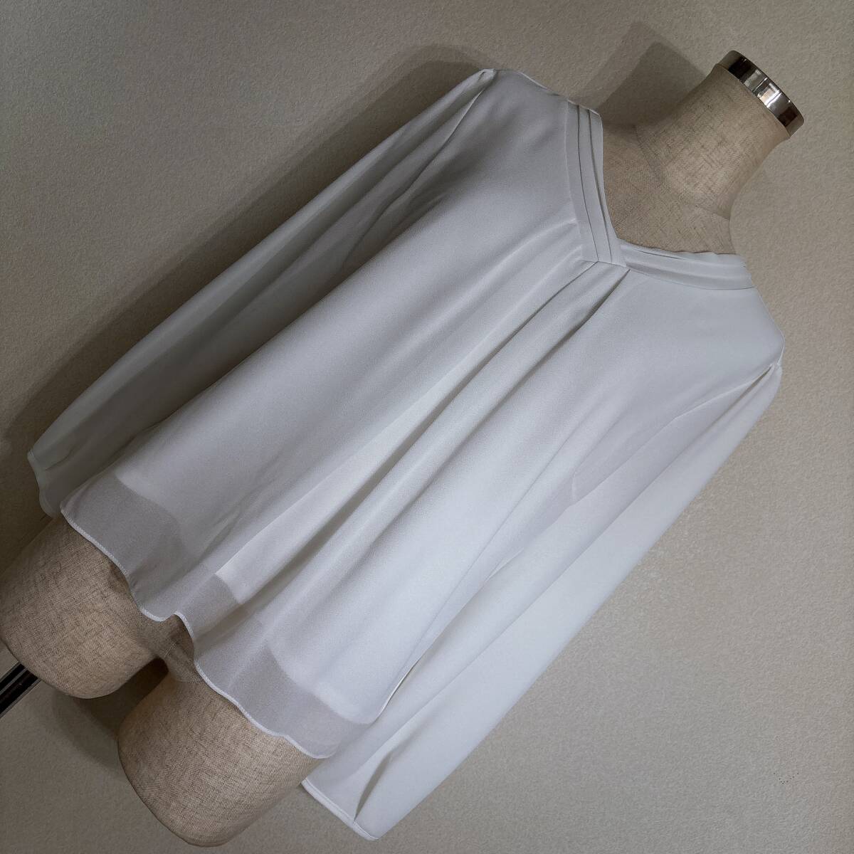 C394美品!■リフレクト★白アイボリー/シフォン&カットレイヤード★プリーツ入★プルブラウス■11 | ||||||||||||||||||||