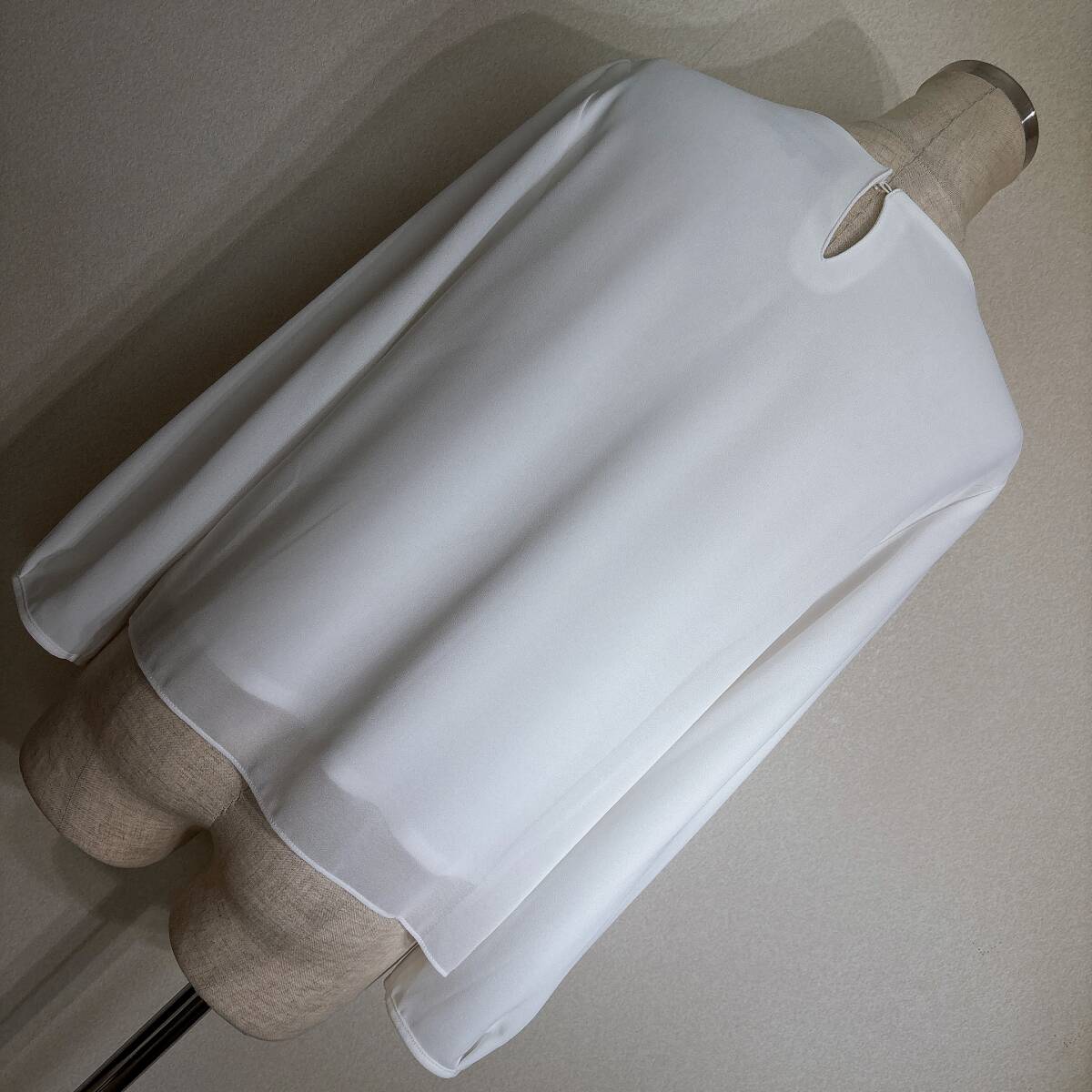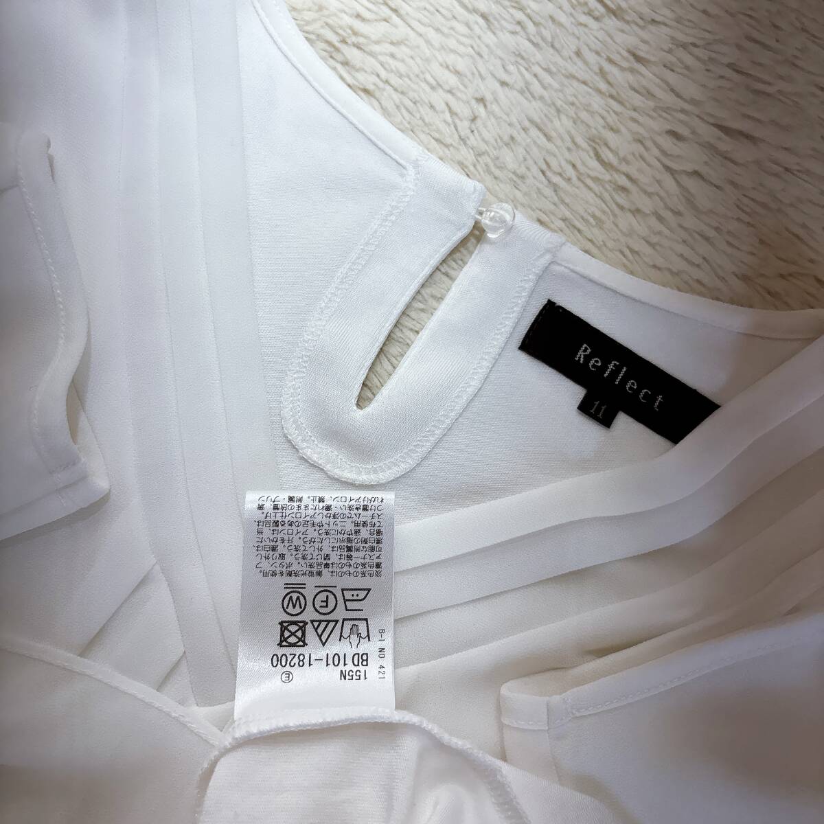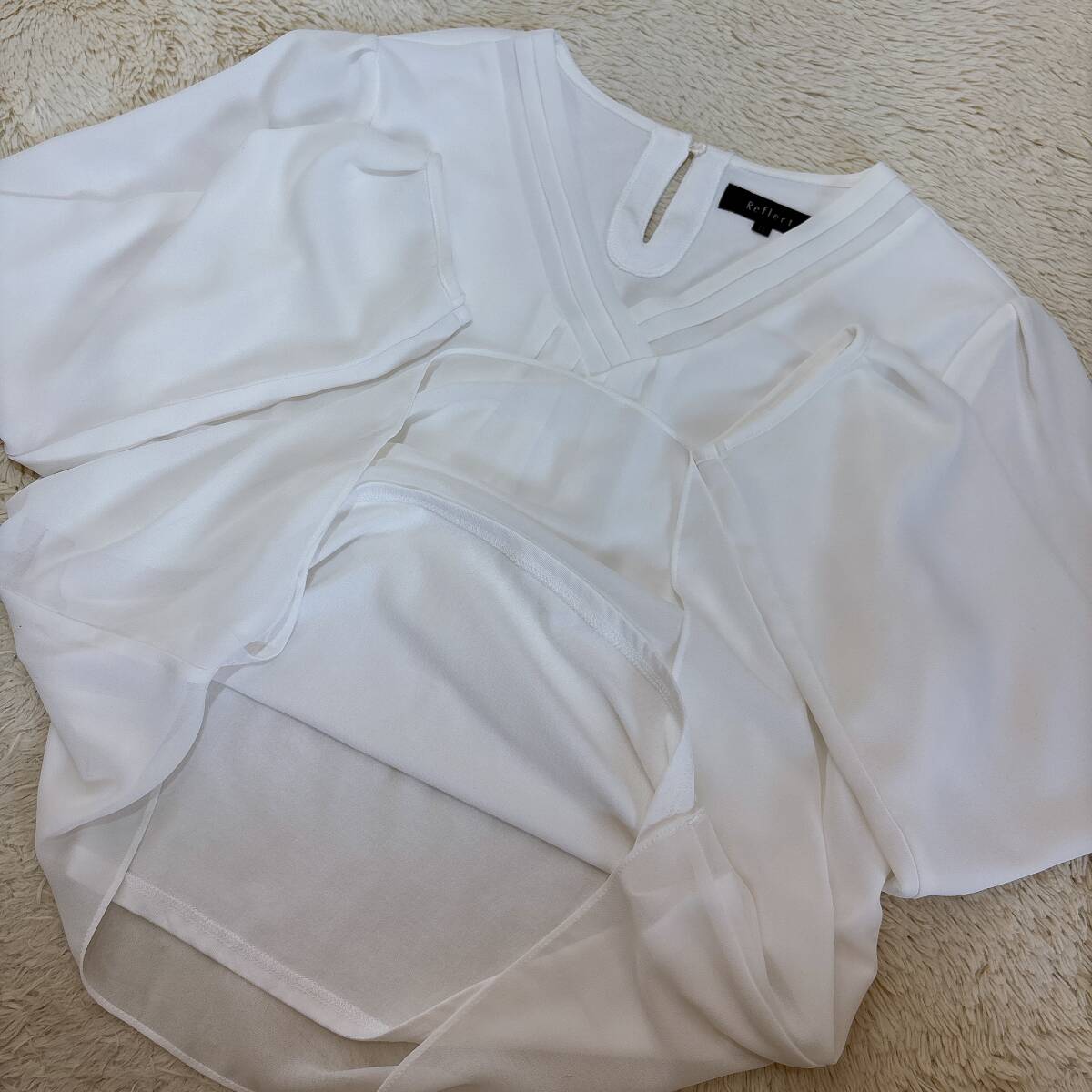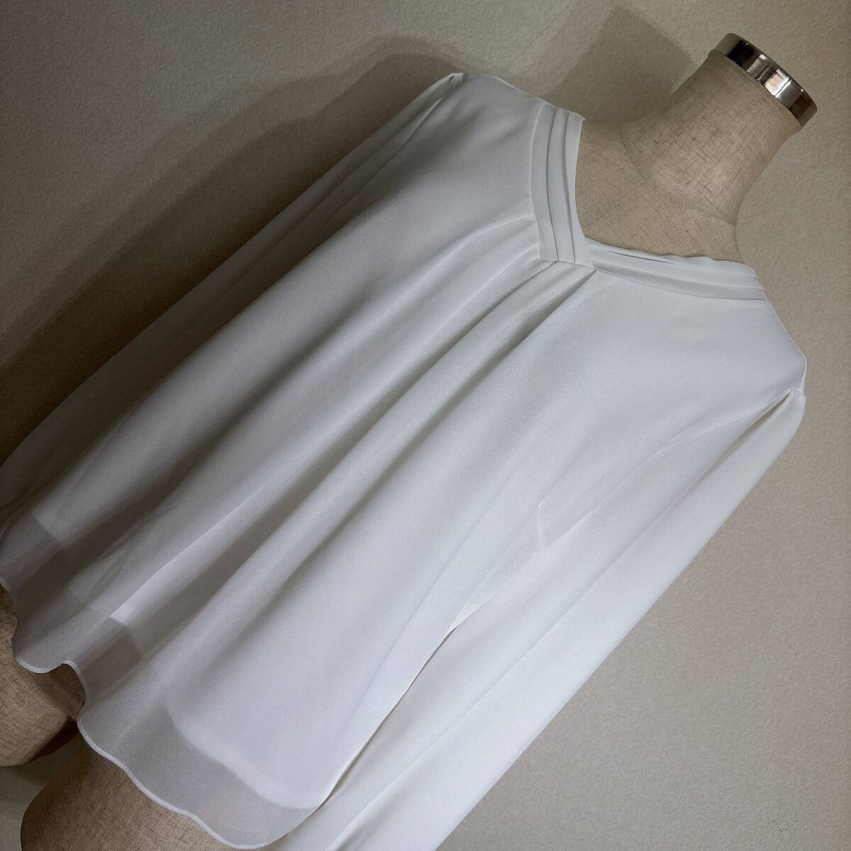 C394美品!■リフレクト★白アイボリー/シフォン&カットレイヤード★プリーツ入★プルブラウス■11 | ||||||||||||||||||||