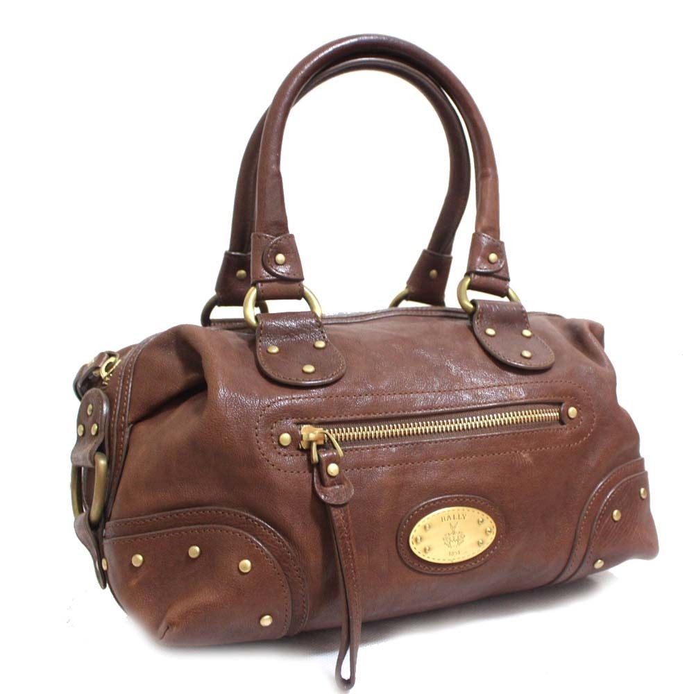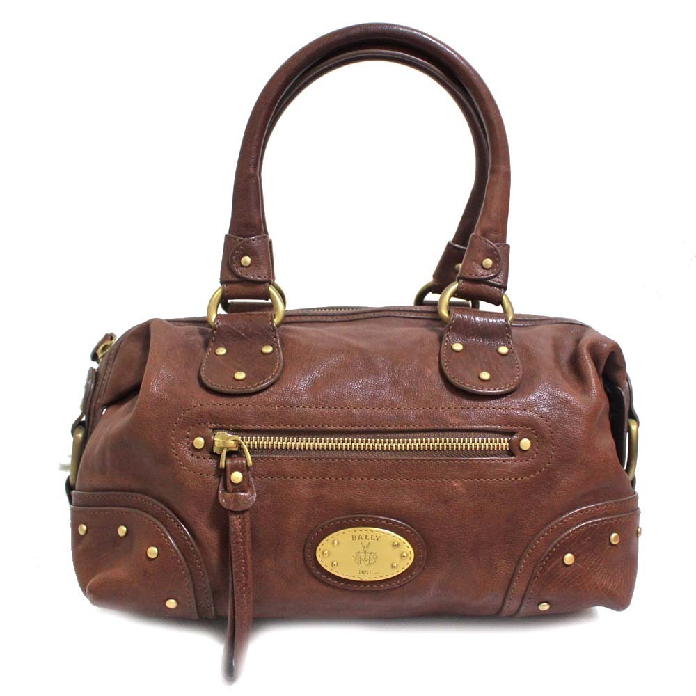 バリー ロゴプレート ハンドバッグ レディース レザー ブラウン 中古 BALLY