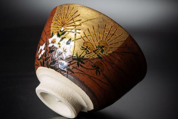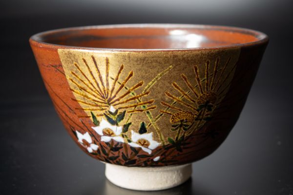九谷焼 庄三洞 武腰一憲作の、秋草絵茶碗です。