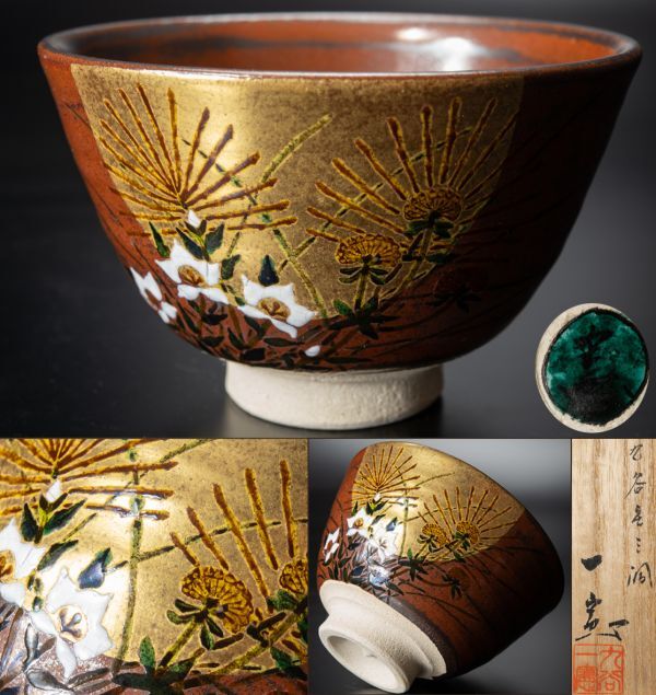 【茶道具】九谷焼 庄三洞 武腰一憲 秋草絵茶碗 桐共箱 共布 保証品