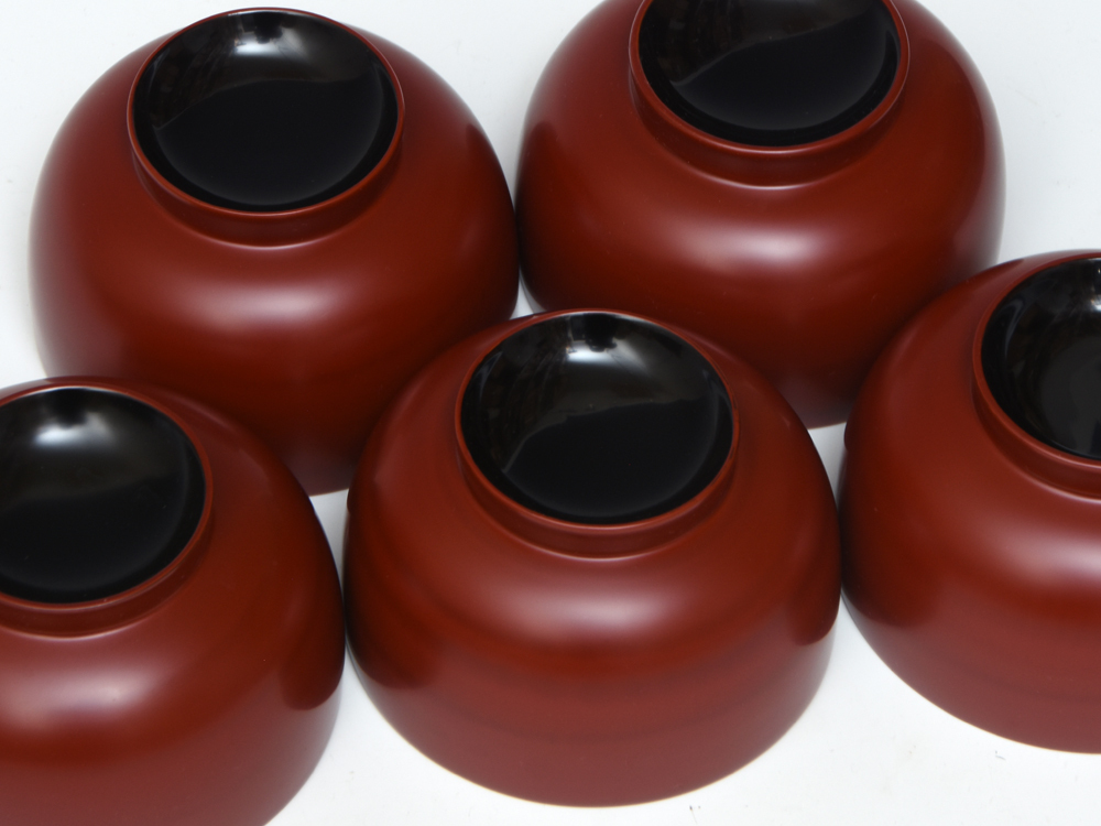 越前塗 うるみ塗 木椀 5客 木製漆器 天然木 古代朱 塗椀 椀 漆工芸 漆芸 茶道具 会席道具 木工芸 茶碗 |