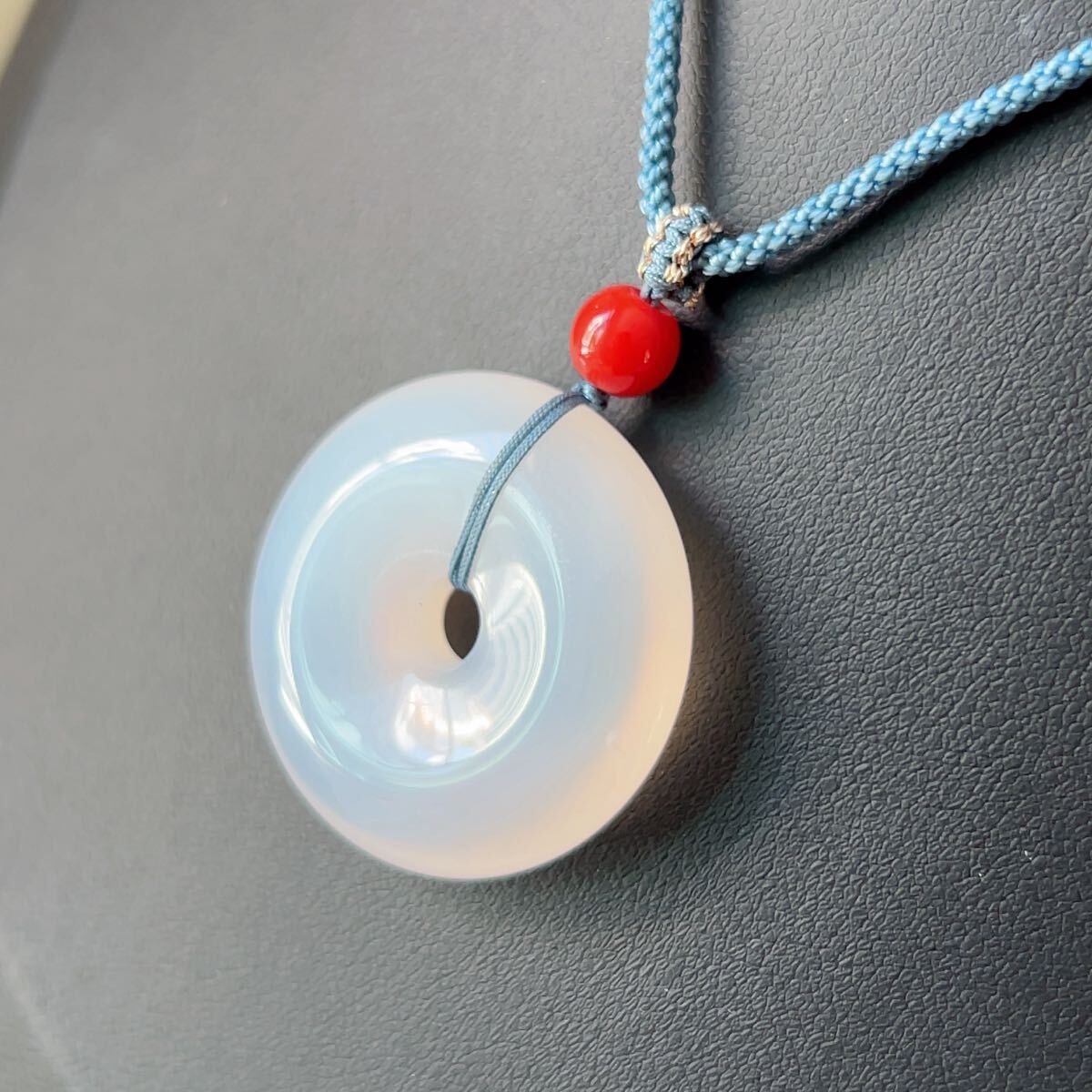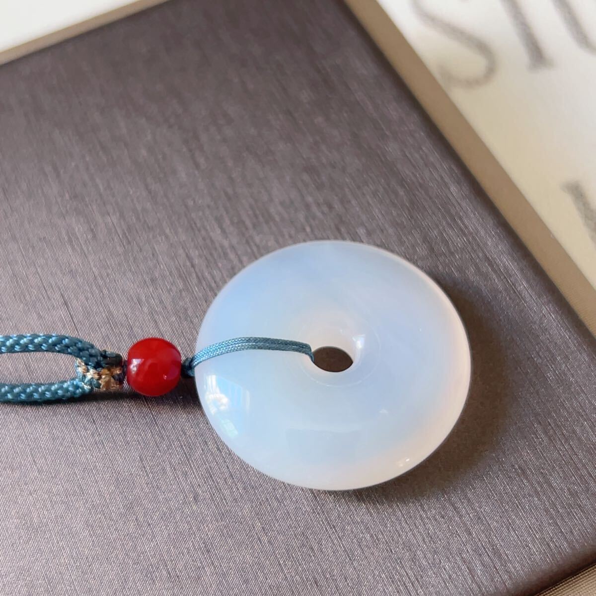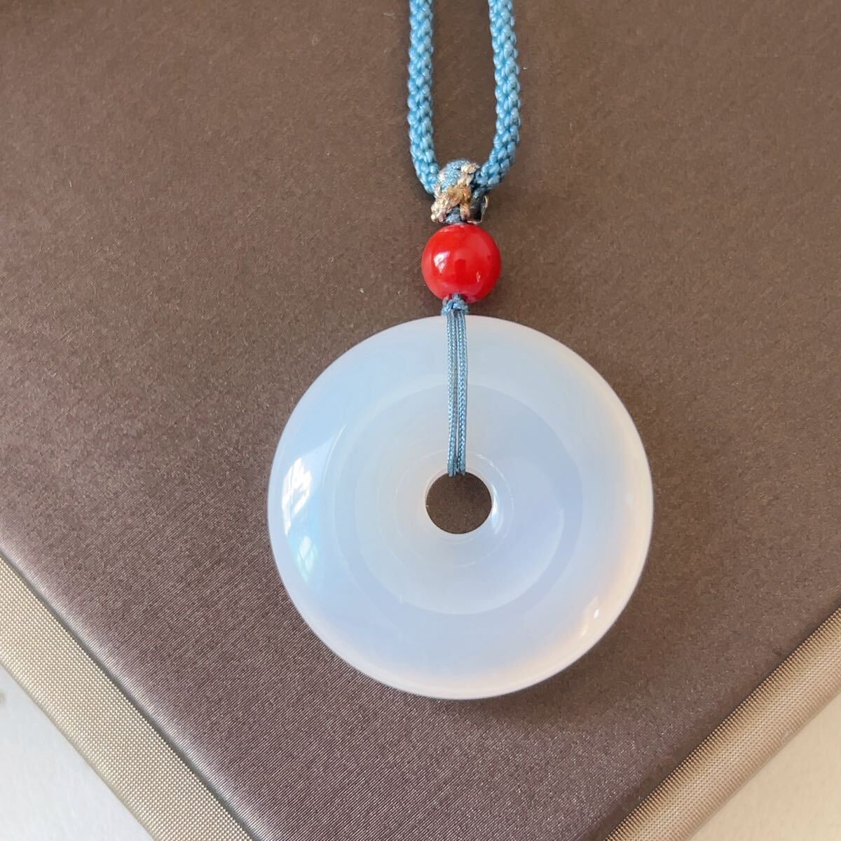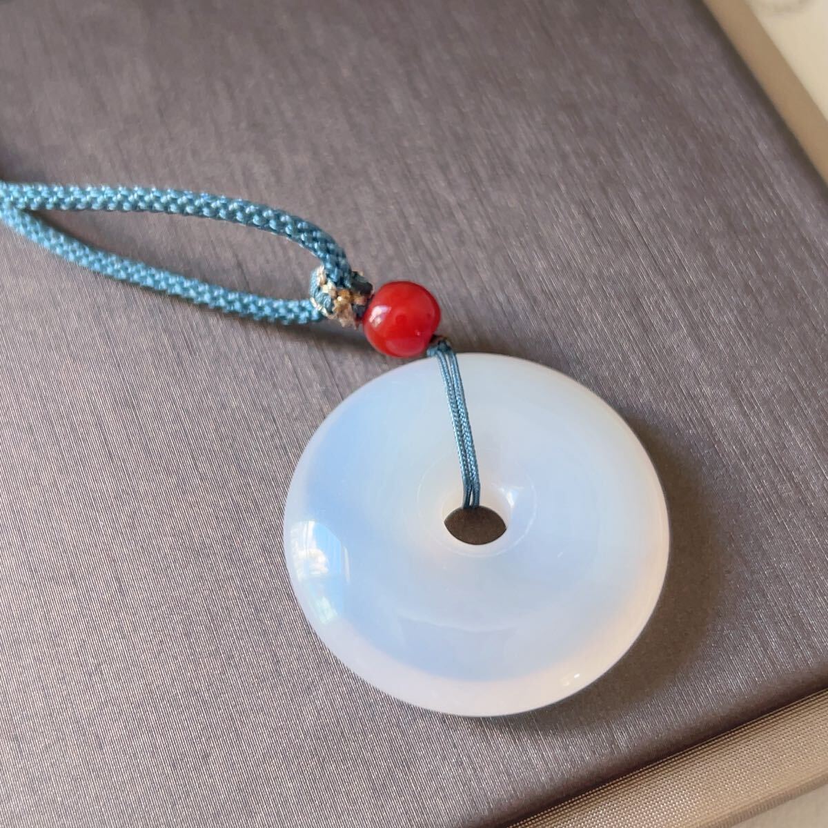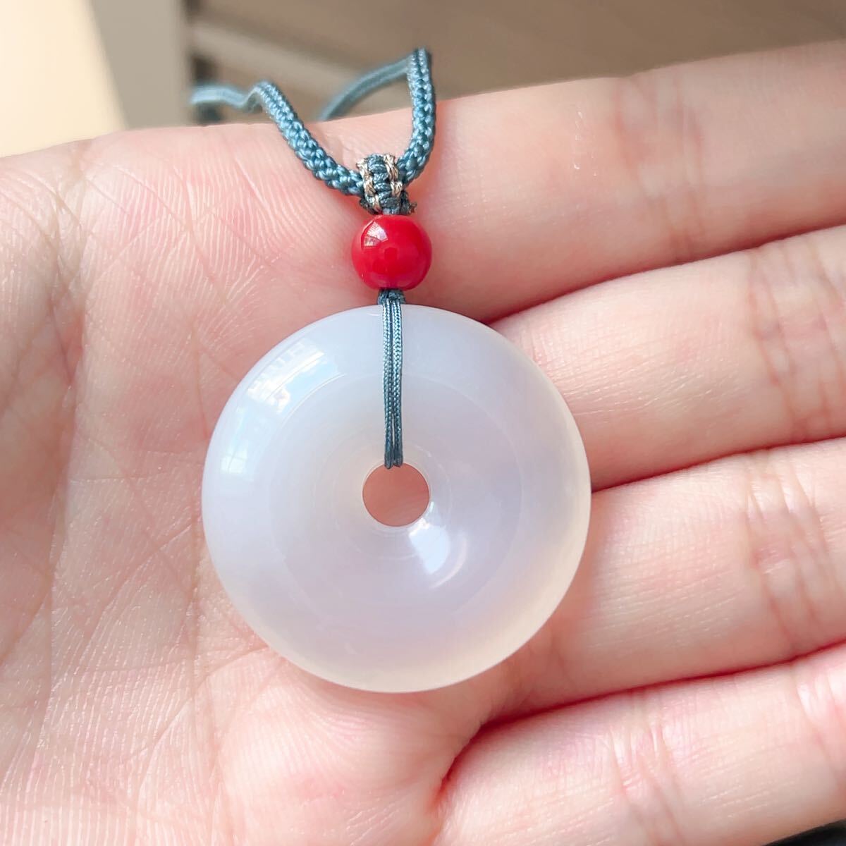 ◇白瑪瑙(アゲート)◇ネックレス◇ペンダント◇ドーナツ型◇平安扣◇お守り◇天然石◇パワーストーン◇巾着袋付き◇プレゼントに010P925