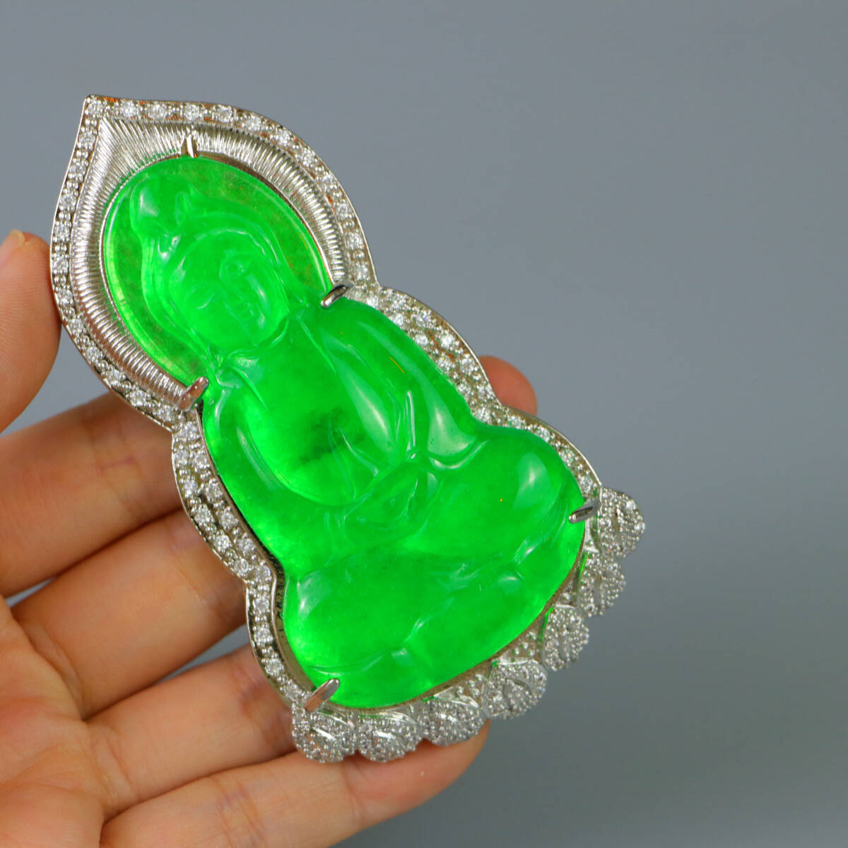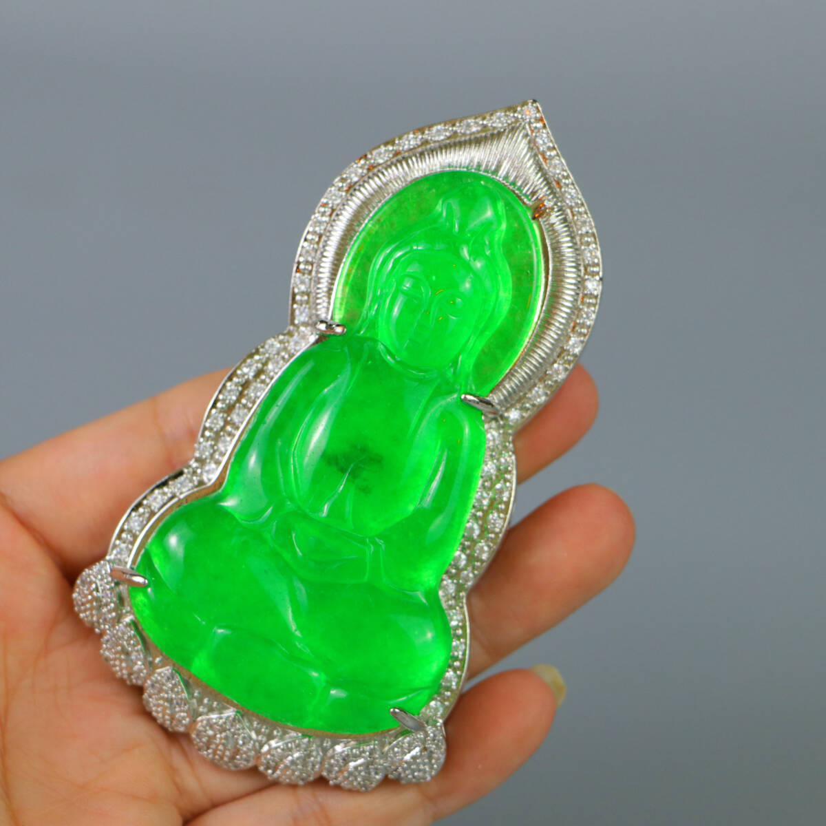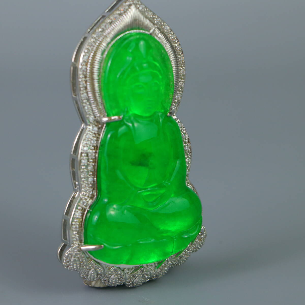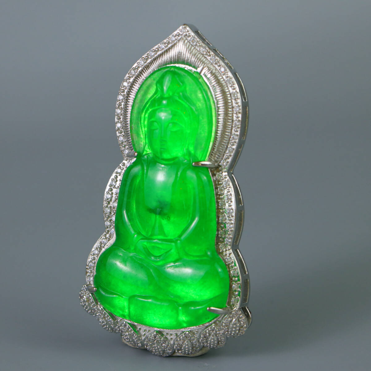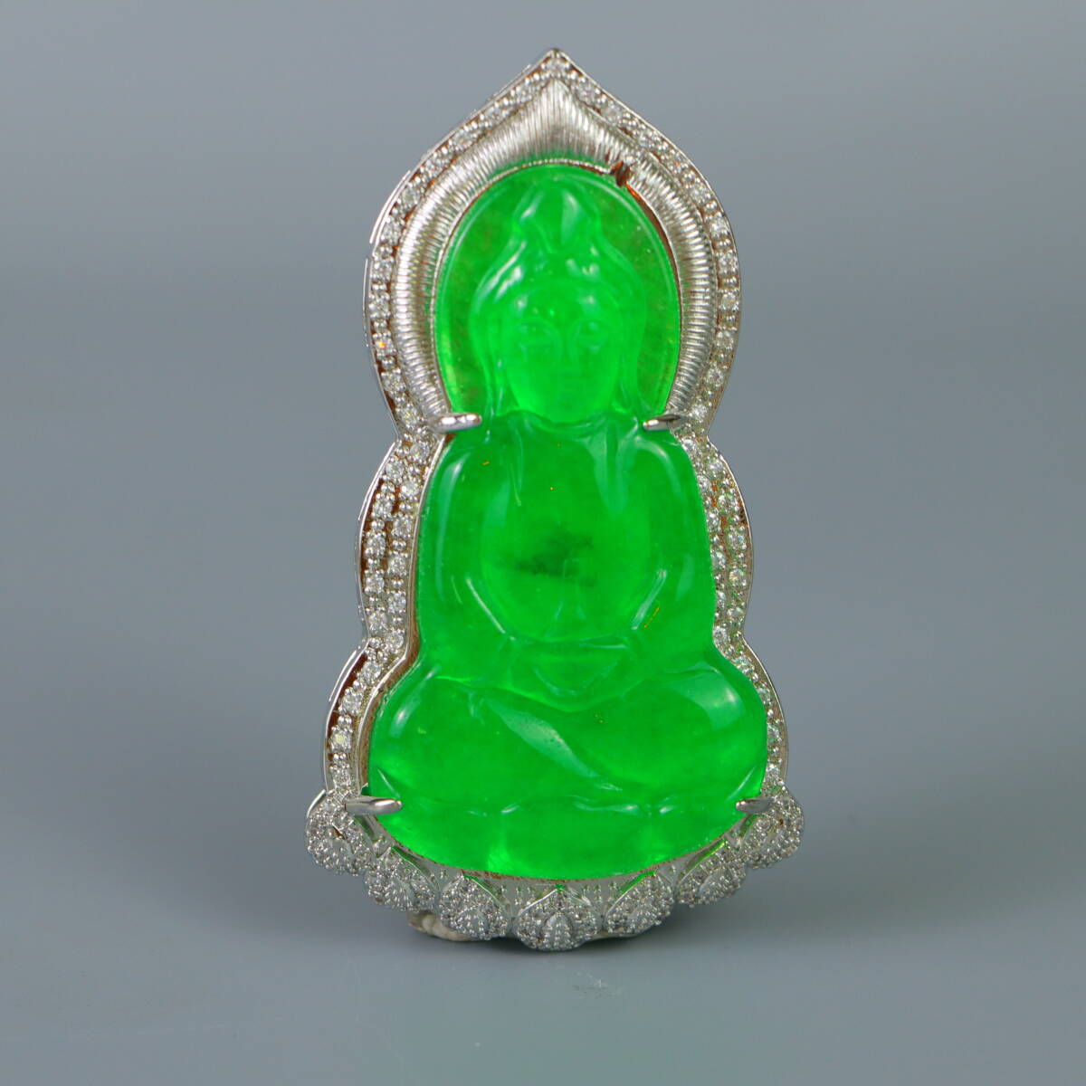 清時代 宮廷御供 高氷 翡翠彫 帝王緑 翡翠 観音 項鏈 頸飾 時代物 古董品 骨董 收集 旧家蔵出し 唐物 中国古玩 古美術品