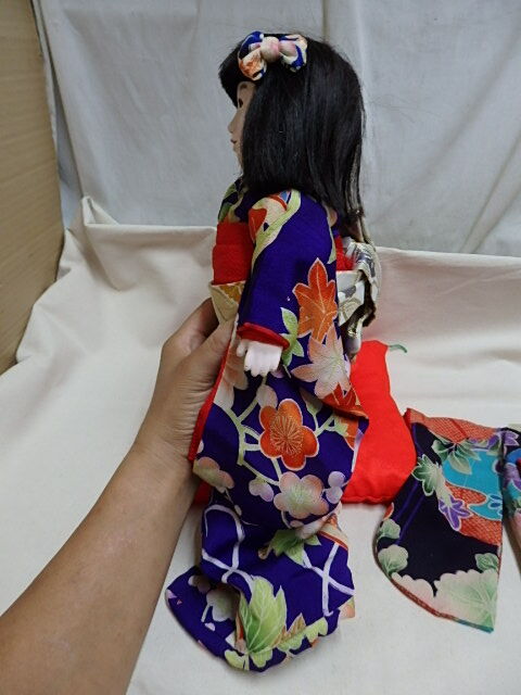 !□市松人形 松乾斎 東光 徳茂 伝統工芸士 女の子 羽織 座布団 台座付き 綺麗目