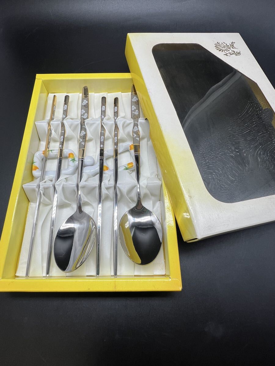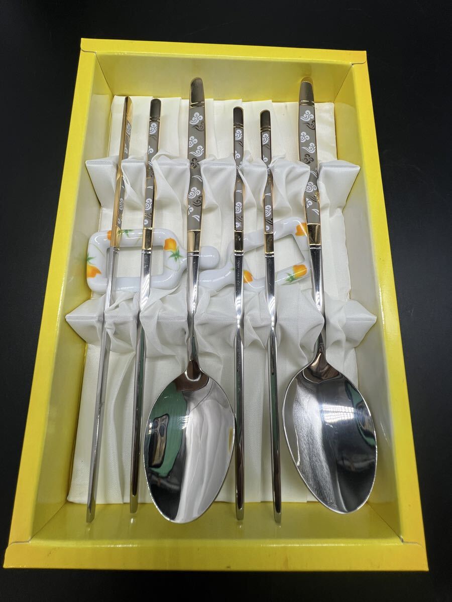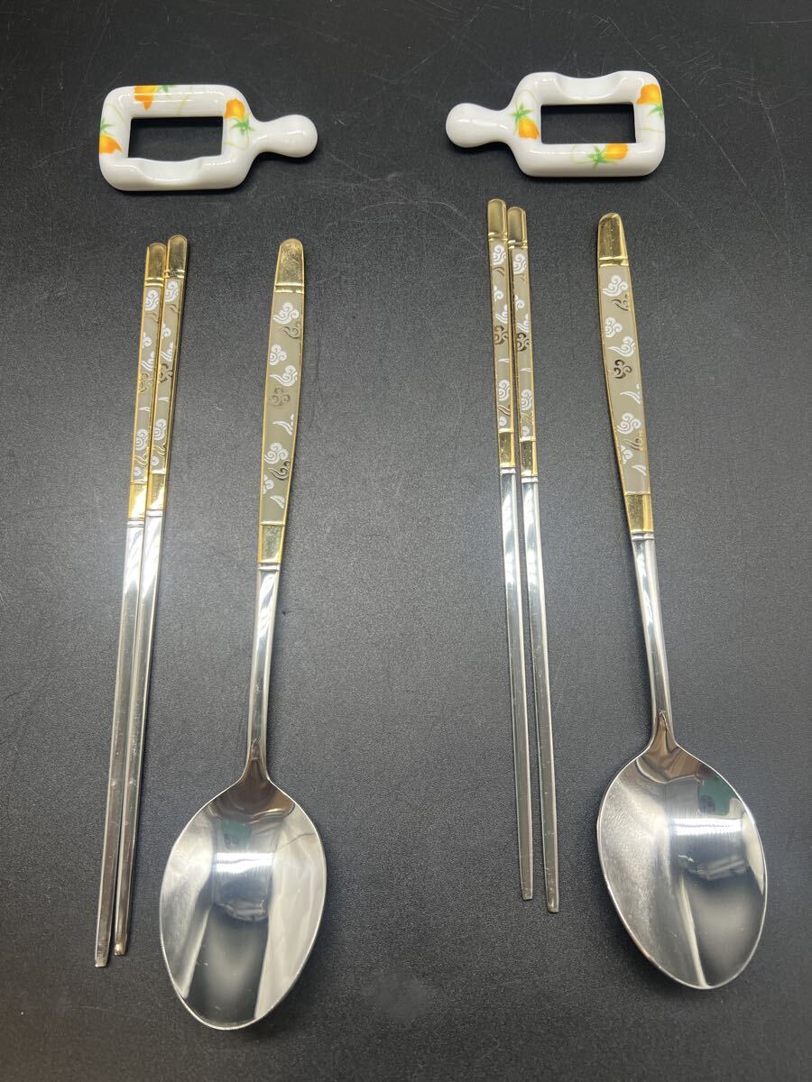 【未使用】箸&スプーンセット 陶器の箸置き付 長期保管 レタパプラス
