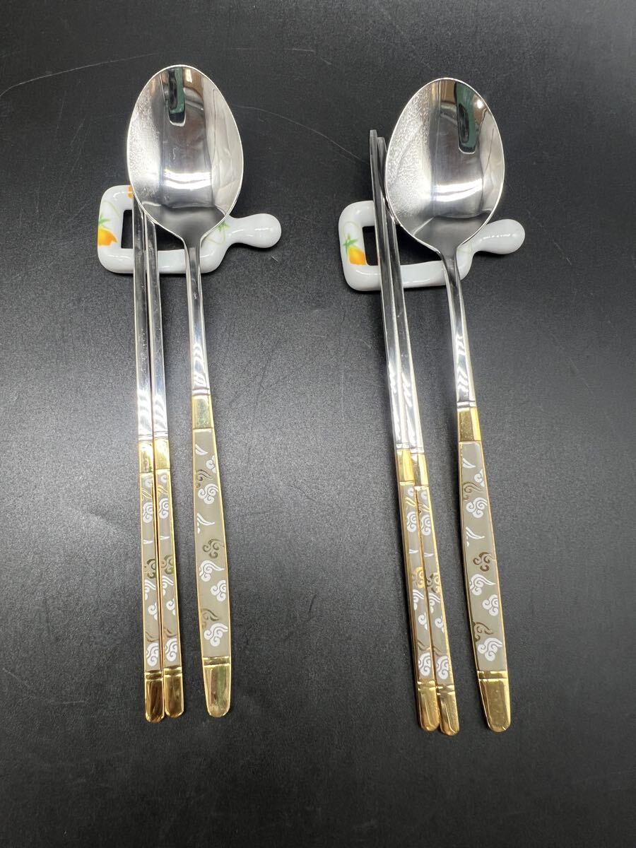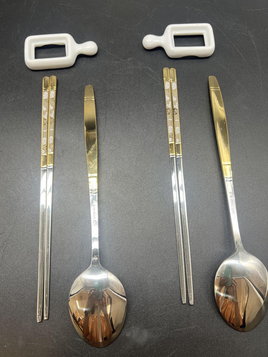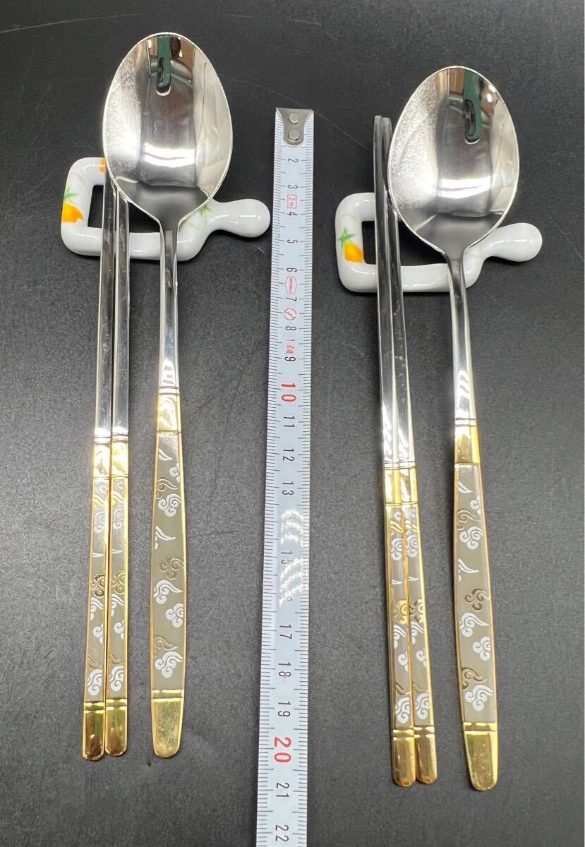 【未使用】箸&スプーンセット 陶器の箸置き付 長期保管 レタパプラス
