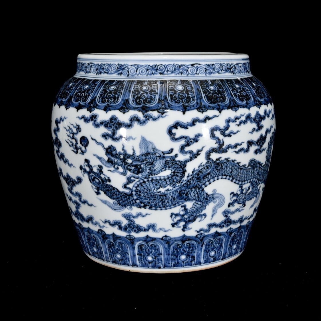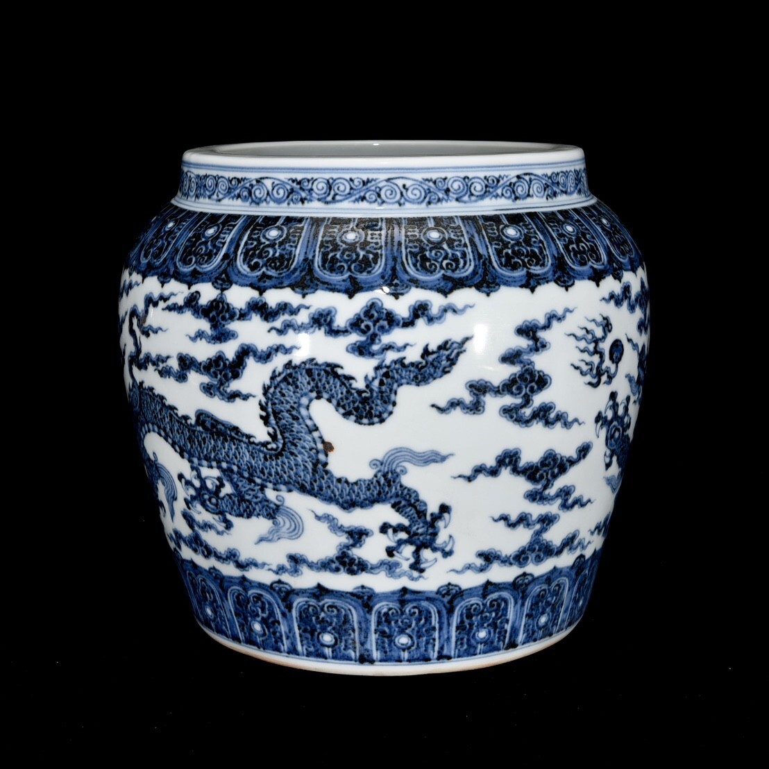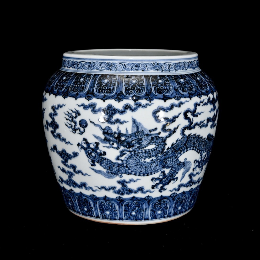 永し 明時代 大明宣德年製 青花龍紋缸 古陶磁器 陶芸 皿 中国陶瓷器 唐瓷 置物擺件 古美術品 古賞物 収集 旧家蔵出 中国唐物 A325
