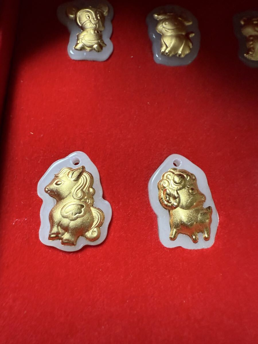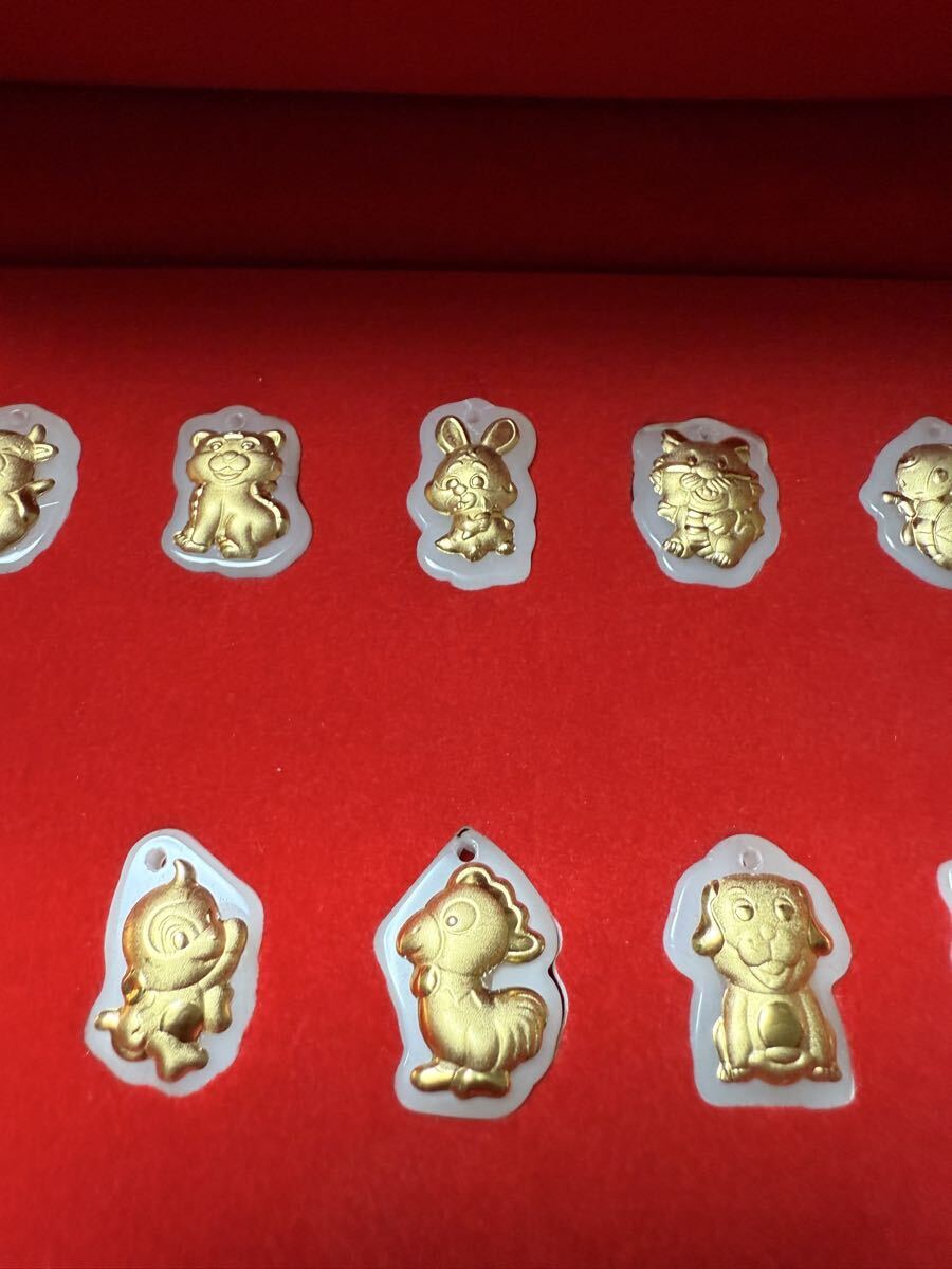 上質翡翠の片側に十二支の辰を彫り、表面に金メッキで飾りました。玉石細工を格安出品いたします。全部12枚があり、十二支を全て揃います。珍しい玉石細工なコレクションにお勧めです。