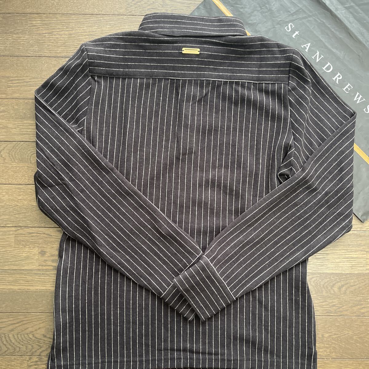 サイズ(レディースL)身長165-175cm/バスト86-92cm(メーカー参照)肩幅36cm/身幅46cm/着丈60cm/袖丈65cm/素材アクリル.レーヨン.ナイロン.ポリウレタン製/SolistHeat吸湿発熱素材/異形断面アクリルとレーヨン繊維ブレンド嵩高性空気層保温性持続/ネル系起毛柔らかな肌触り素材/裏鹿の子蒸れ軽減弾力性ストレッチ加工/両裾スリット加工/カラーブラック×グレーストライプ柄+ゴールドラメ入りケルトロゴ刺繍加工+St ANDREWSゴールドメタリックプレート付/内側TSI識別タグ付/MADE IN JAPAN/直営店秋冬希少完売サイズ大特価商品。宜しくお願い致します。写真撮影での色合いが遮光率により実際の色と異なる場合が有ります。予めご了承願います(((価値観の相違など回避の為セントアンドリュース商品に不慣れな方や色合いが特に気になる方,受取連絡困難な方はご遠慮下さい)))最終お取引受取連絡完了可能な方でのご落札をお願い致します。