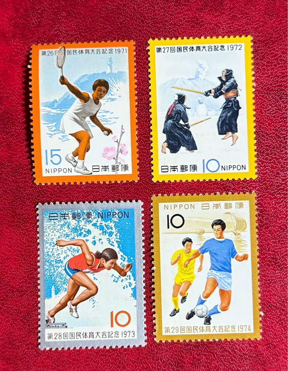 未使用 記念切手 国民体育大会 1971 1972 1973 1974