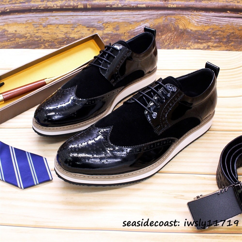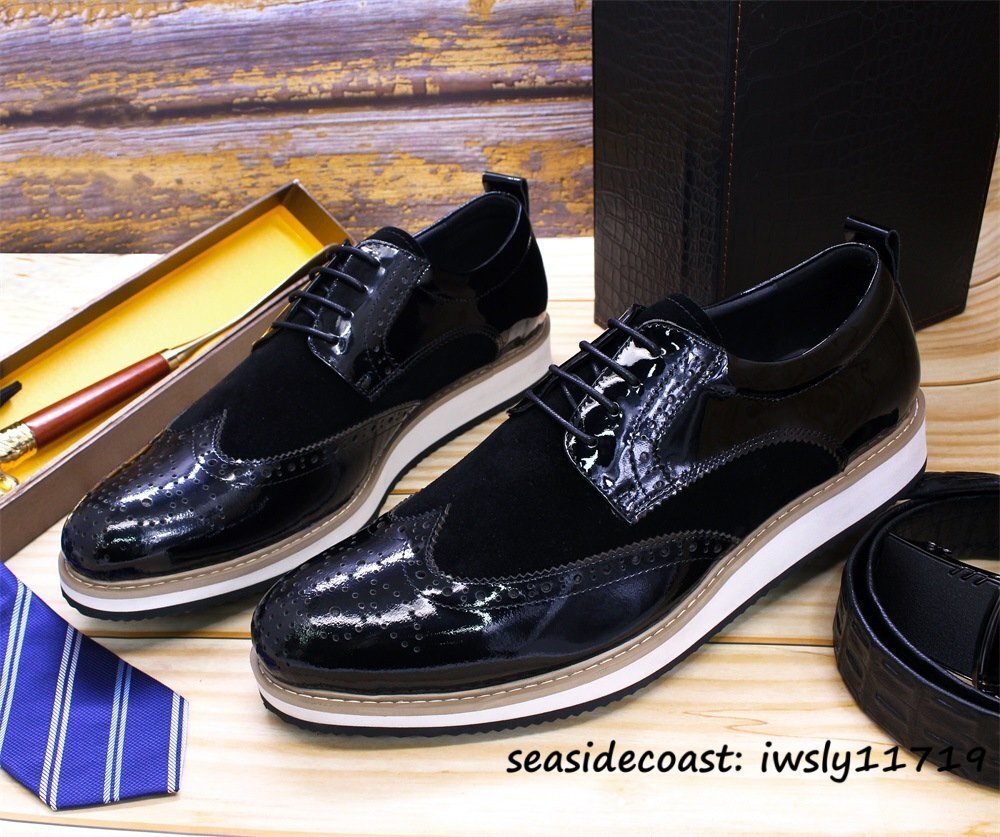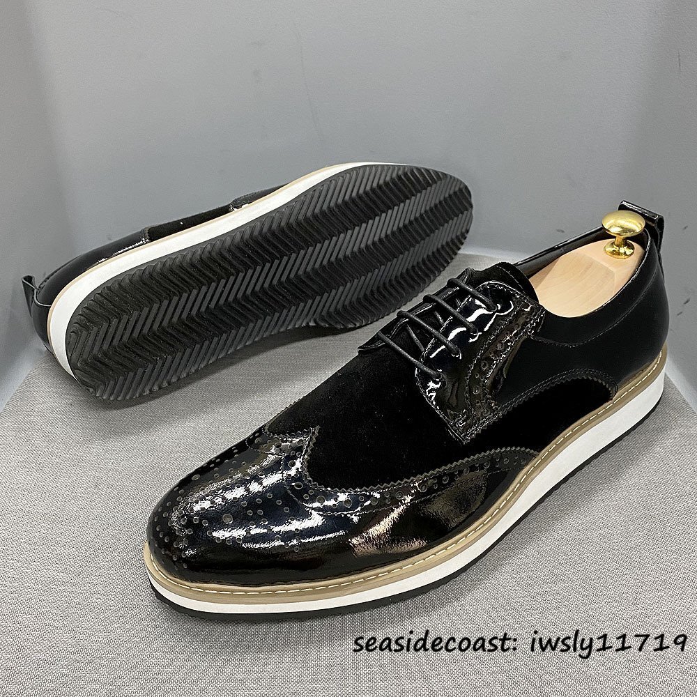 定価9万★スエード革 切替 ビジネスシューズ メンズ 本革レザーシューズ スニーカー 職人手作り 彫り 紳士靴 牛革 革靴 ローファー 25.5cm