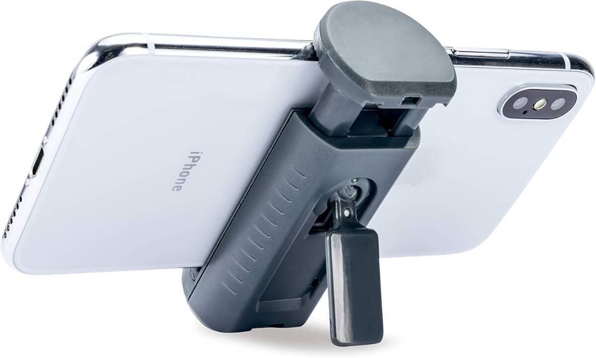 ・スマートフォンホルダー付属のコンパクトなビデオクリップ。縦・横どちらの向きでもスマートフォンを固定でき、脚を開けばテーブル三脚として使用可能です。