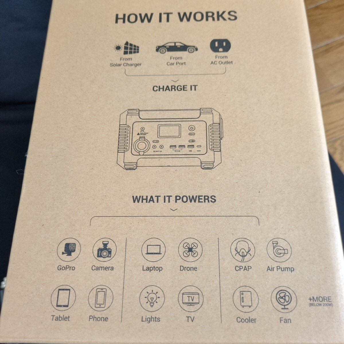 用途: キャンプや緊急時の電源確保、低電力のガジェット(LEDライト、小型扇風機、スマートフォンなど)への給電に適しています。