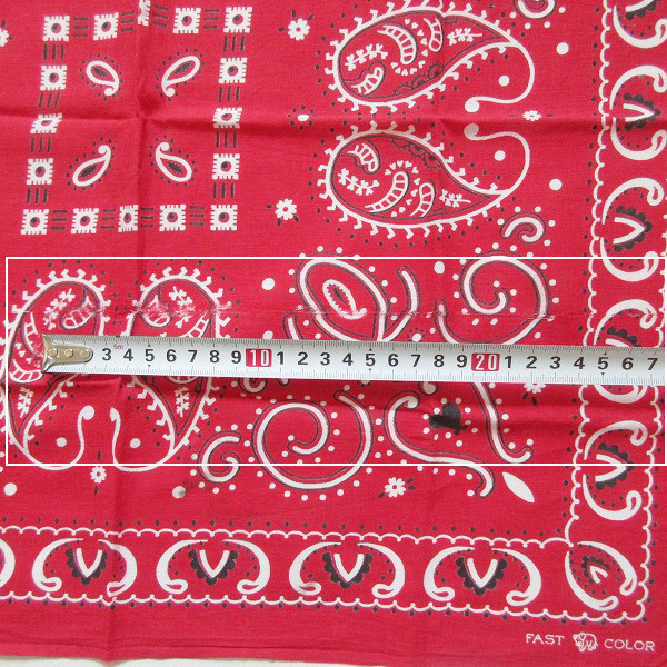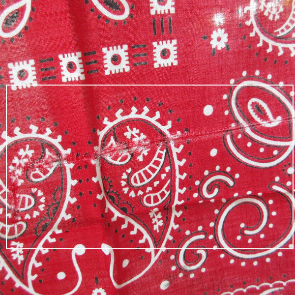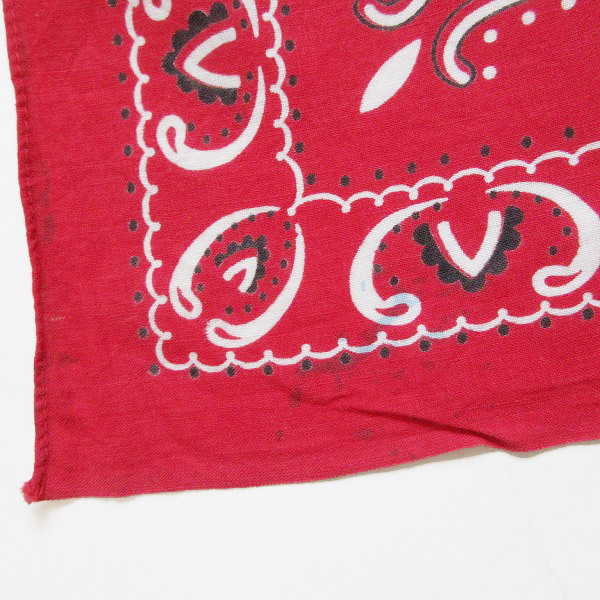 アメリカから買い付けたアイテムです。 1950年代製の希少なビンテージ バンダナです。 下鼻象のFAST COLOR記載。 コットン素材の片耳生地です。 縁のほつれやシミ汚れなどがあります。 L字型の大きな伝線のような裂けかかった部分があり、幅は28cm程度あります。 ダメージがありますので味としてご理解いただける方にオススメです。 人気のビンテージ バンダナです。是非ご検討ください。 |