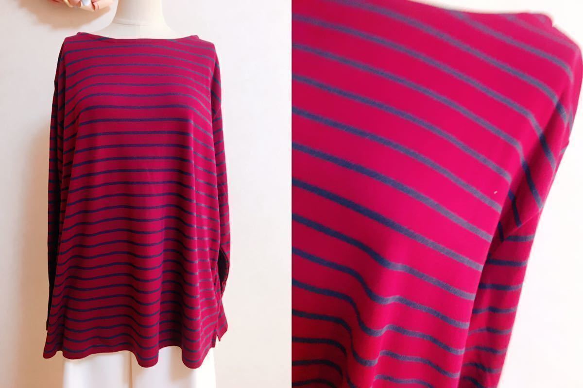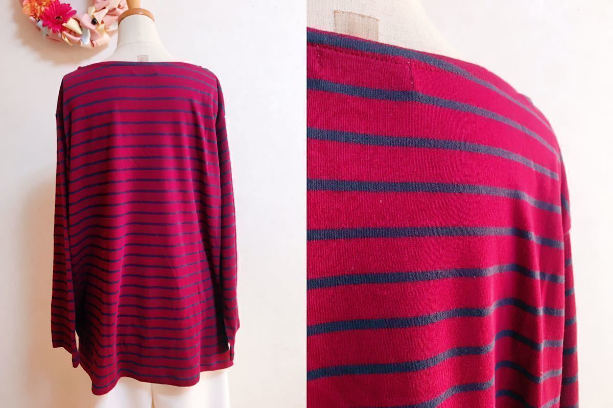 FE446* 5L 大きいサイズ シンプルボーダープルオーバー ワイン ネイビー
