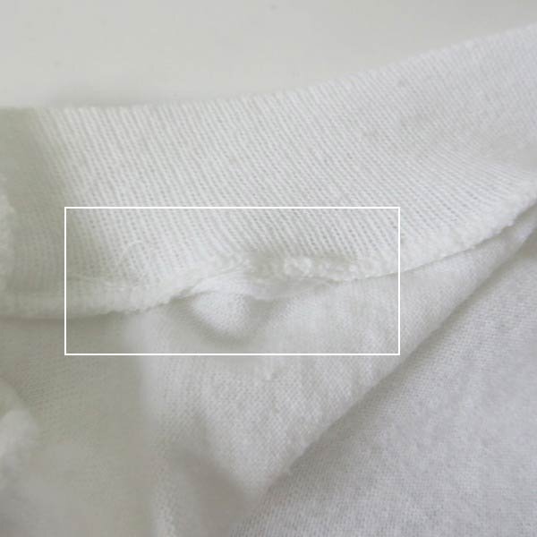 ビンテージTシャツのディテールとして人気の袖・裾ともにシングルステッチです。