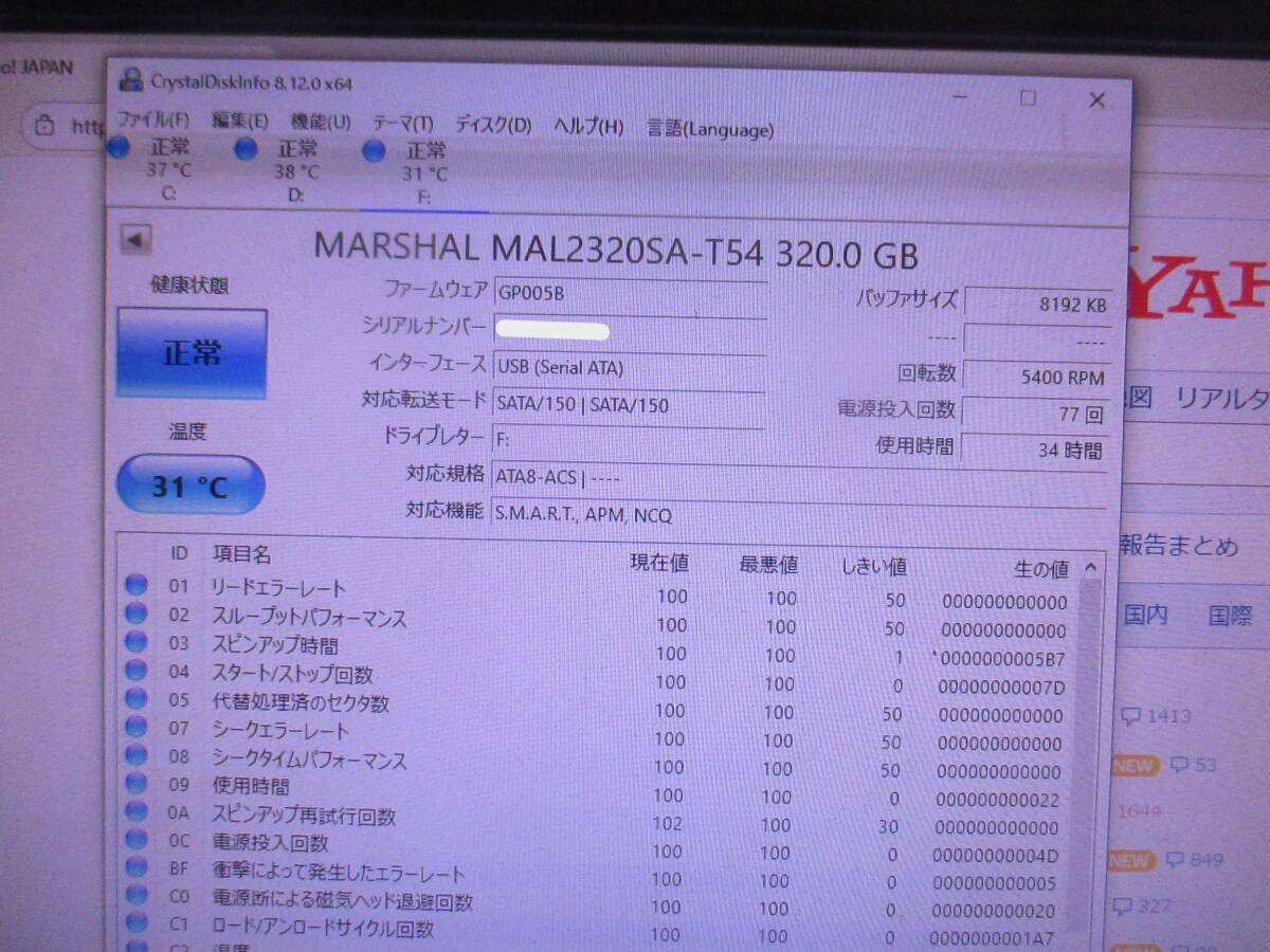 [A7-1/M70903-1]★MARSHAL SHELTER ポータブル 外付けハードディスク 320GB 使用時間34h★