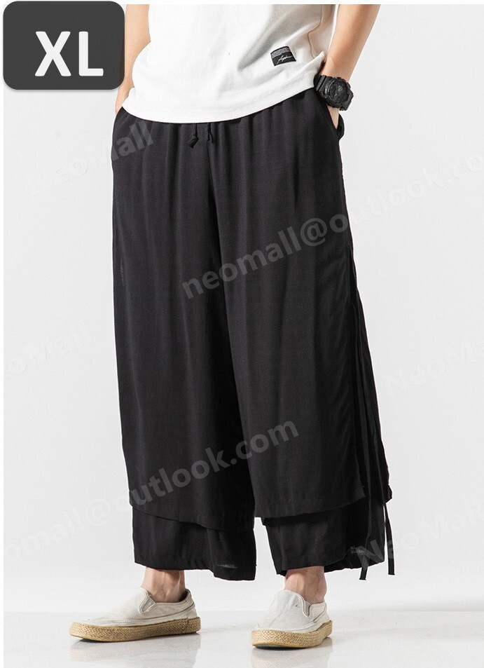 お買い得☆メンズ ワイドパンツ ブラック XL カジュアル ロングパンツ スウェット 無地 ポケット付 オールシーズン【066】
