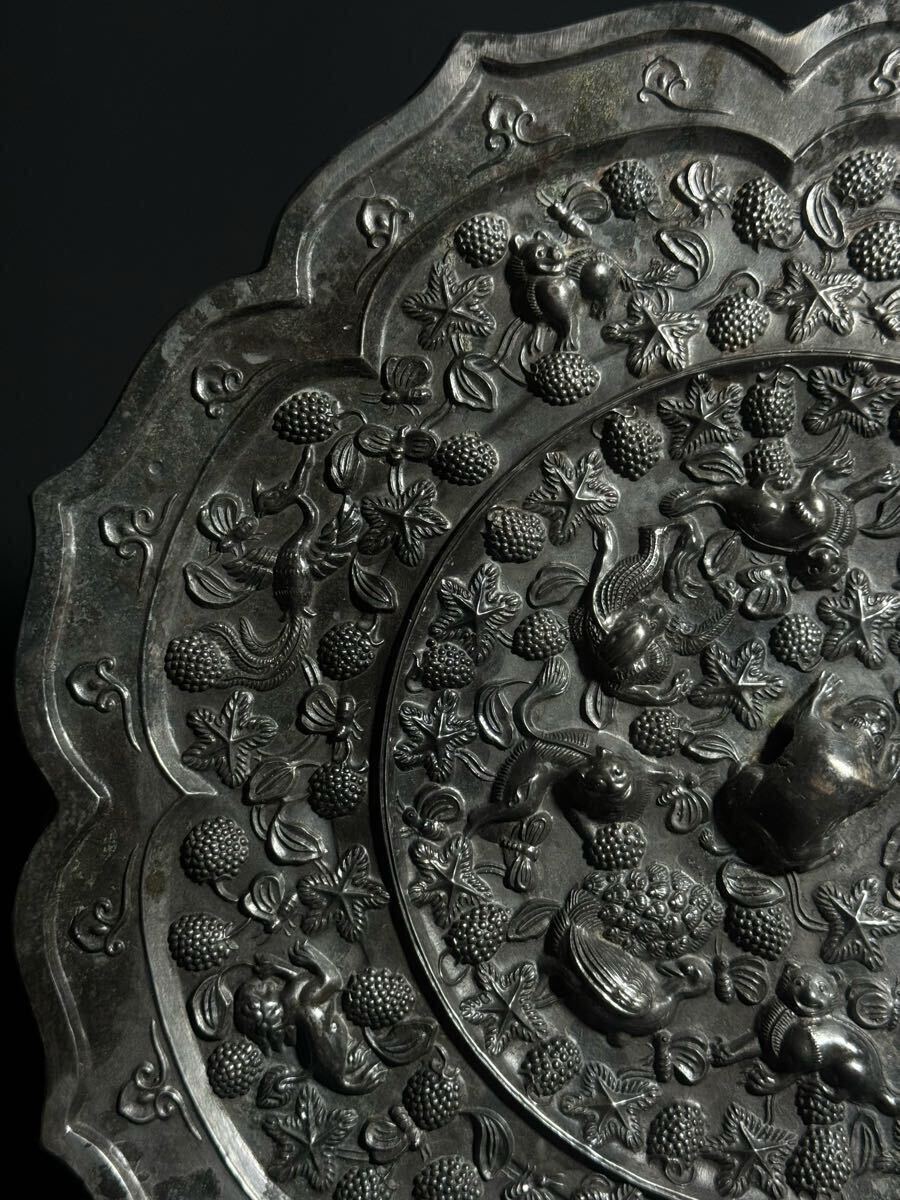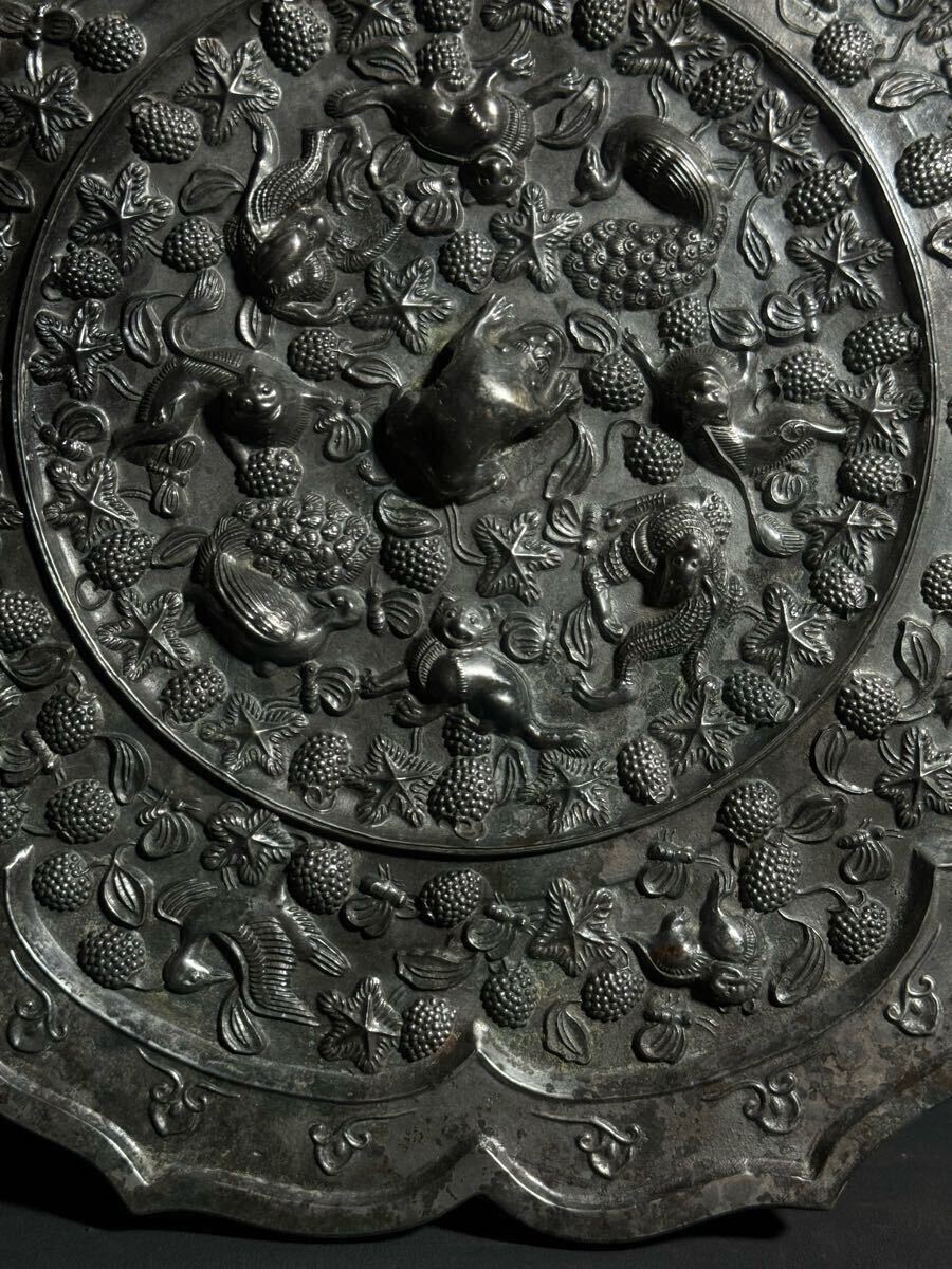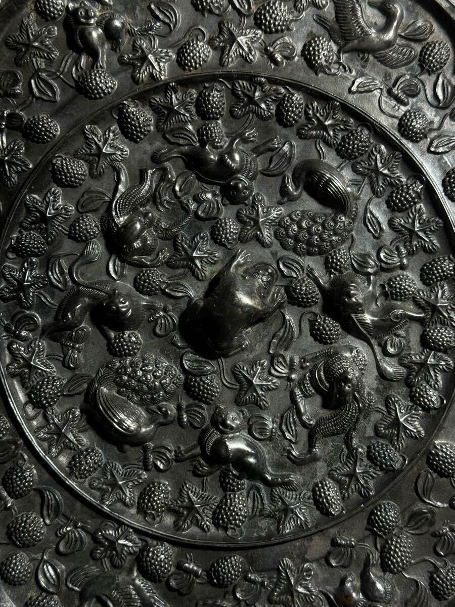 【竹河】中国古美術 古鏡 銅鏡 海獣紋葡萄鏡 青銅器 置物 古玩 骨董 時代物 当時物 唐物 中国古玩 0025