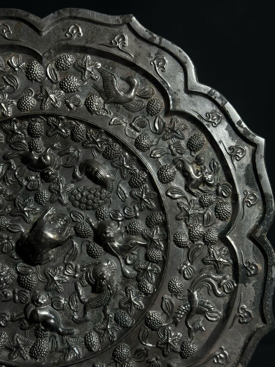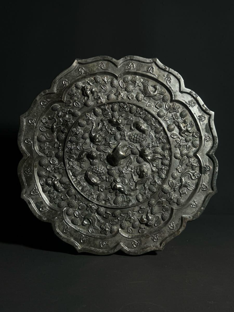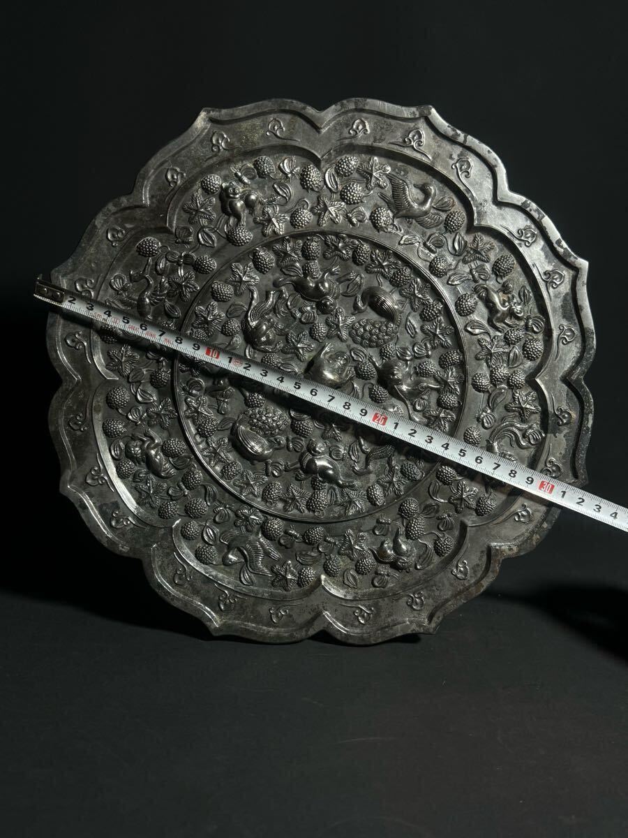 【竹河】中国古美術 古鏡 銅鏡 海獣紋葡萄鏡 青銅器 置物 古玩 骨董 時代物 当時物 唐物 中国古玩 0025