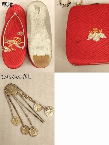| 着物【正絹】の状態は特に目立ったシミ汚れなどもなく大変良い状態です。 長襦袢【化繊】の状態は特に目立ったシミ汚れなどもなく大変良い状態です。 小物の状態は接写画像のように草履・バッグ・びら簪刺しに汚れがございますが その他特に目立ったシミ汚れなどもなく大変良い状態です。 大変上質な逸品になります。 お安く出品致しますので、是非この機会にいかがでしょうか?