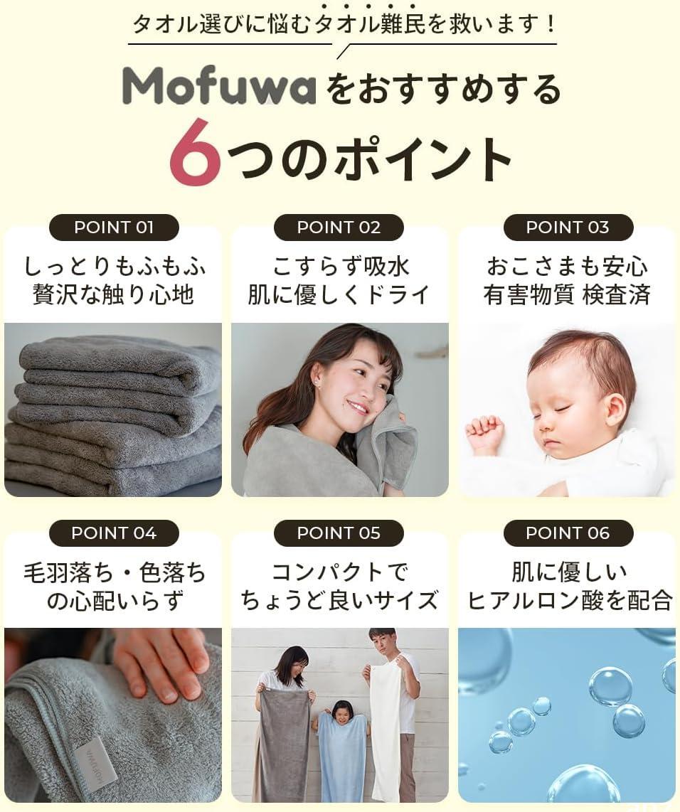 Mofuwaバスタオルセットは、柔らかくて心地の良さに焦点を当てたバスタオルです。 厳選した柔らかい生地(Cloud Touch)のみを使い、コンパクトながらも最高の快適さを提供します。 新しい生活のスタートやプレゼントにも最適です。 Mofuwaはあなたの毎日に豊かなバスタイムをもたらします。