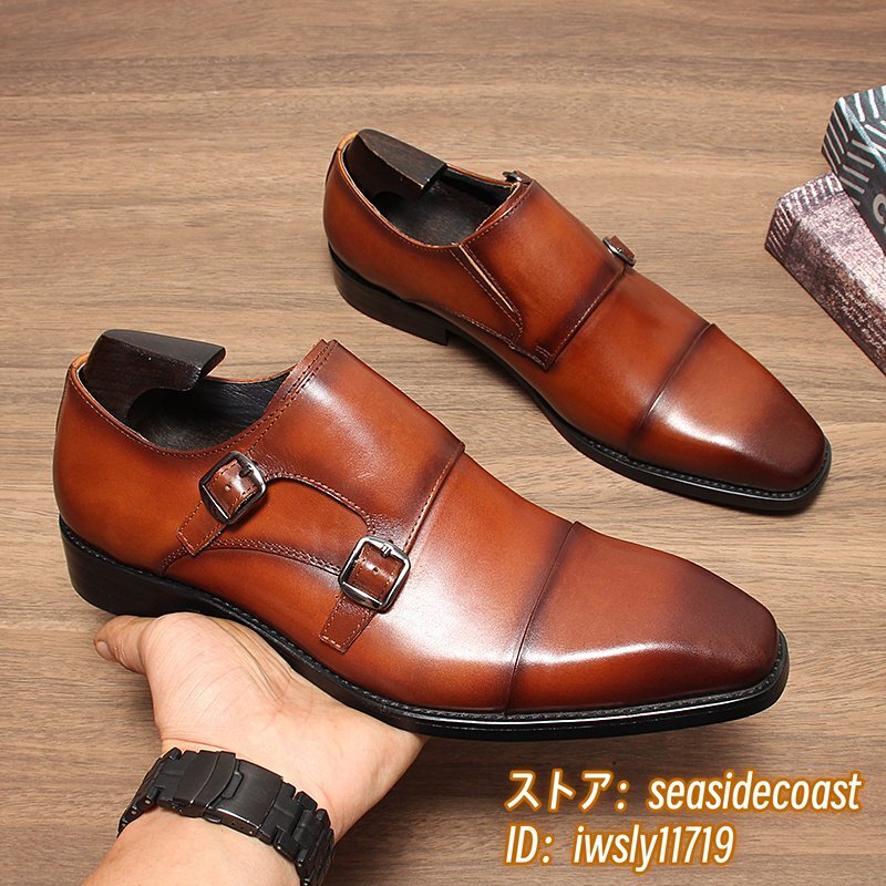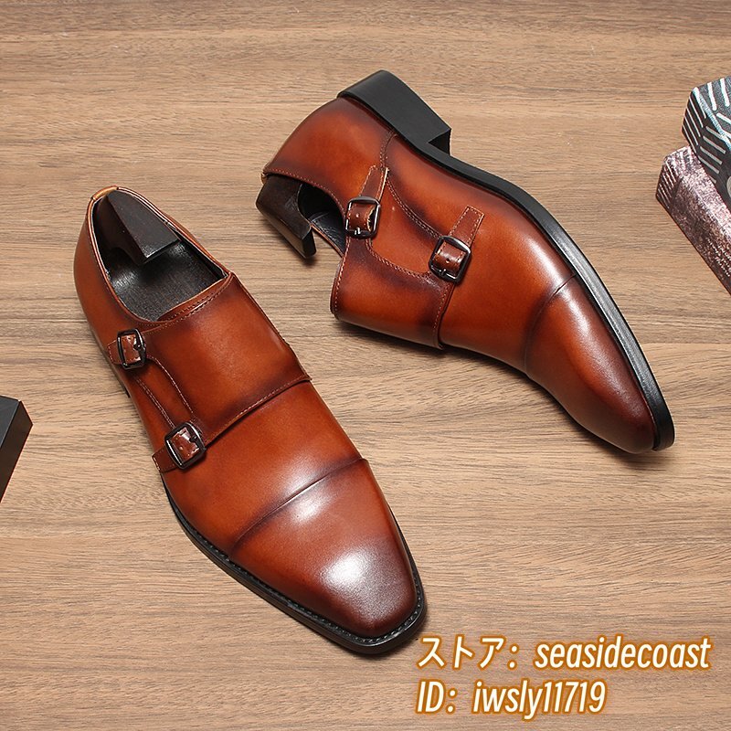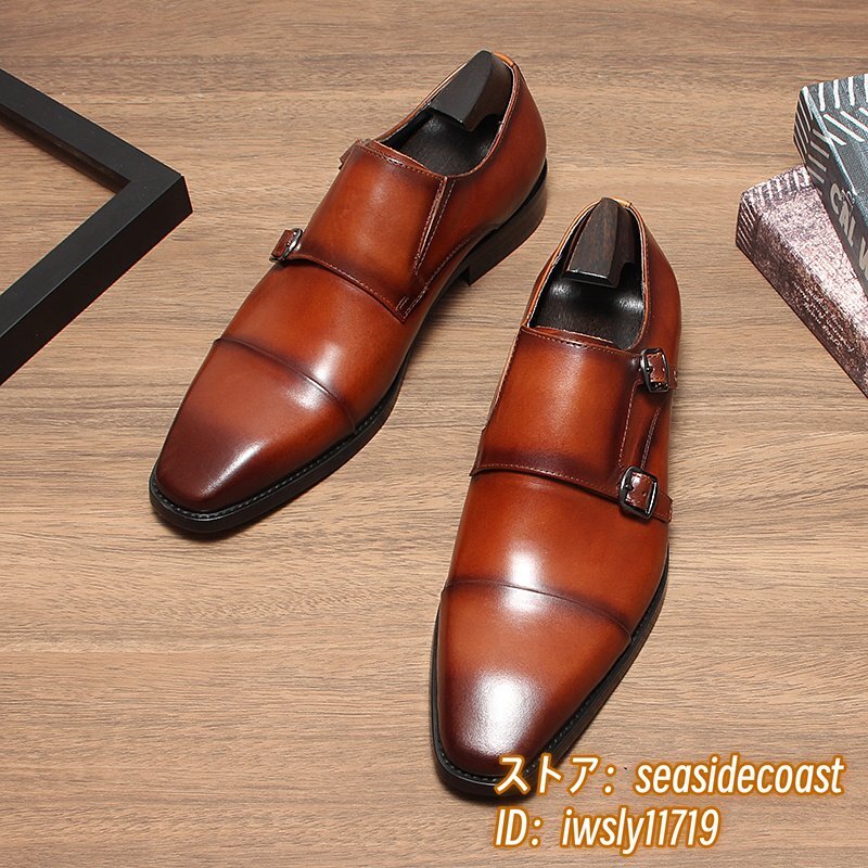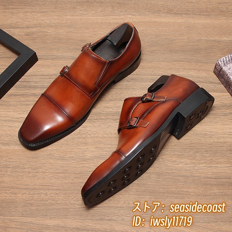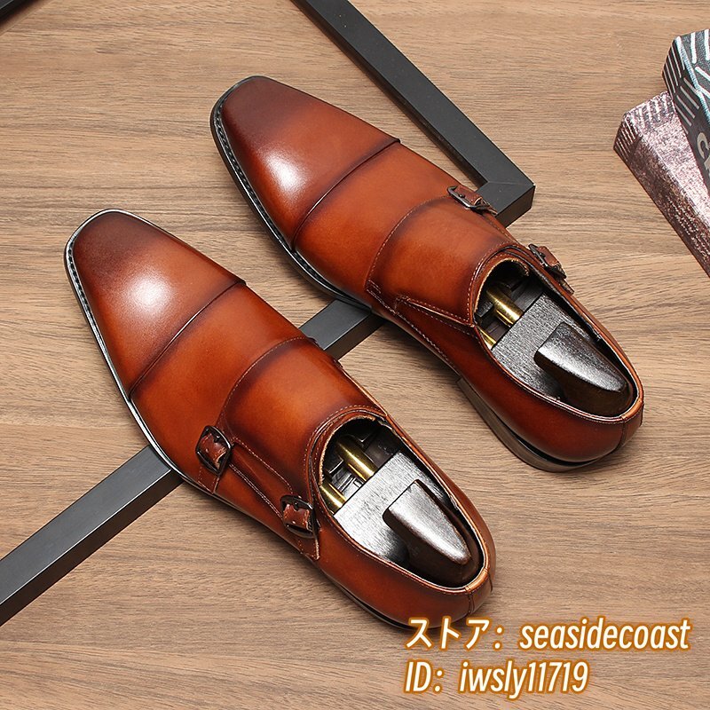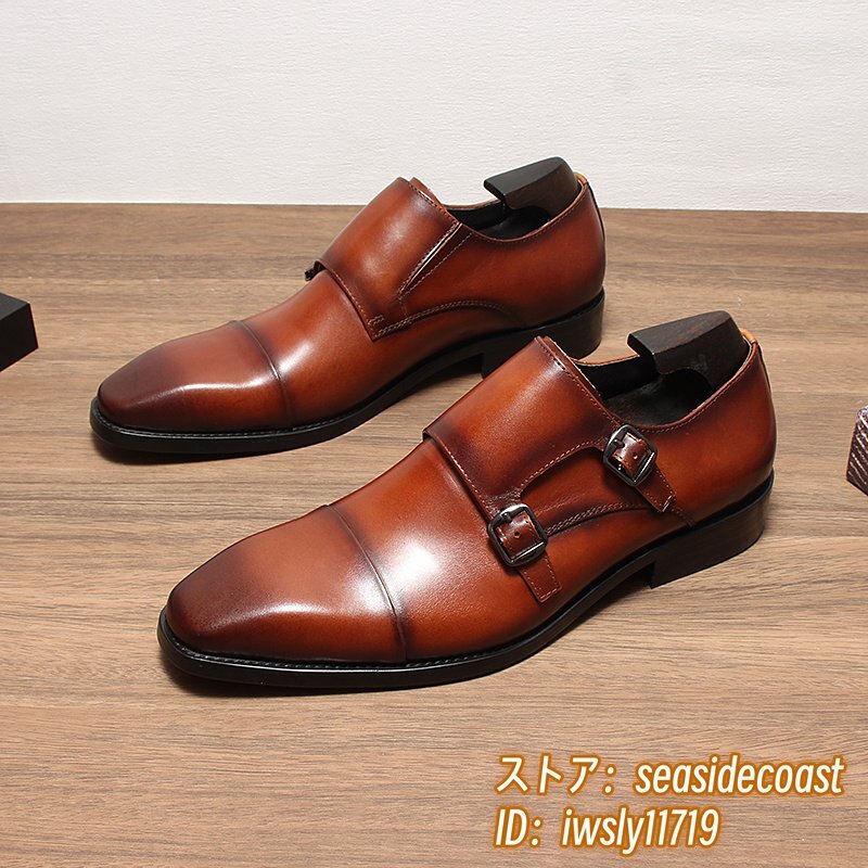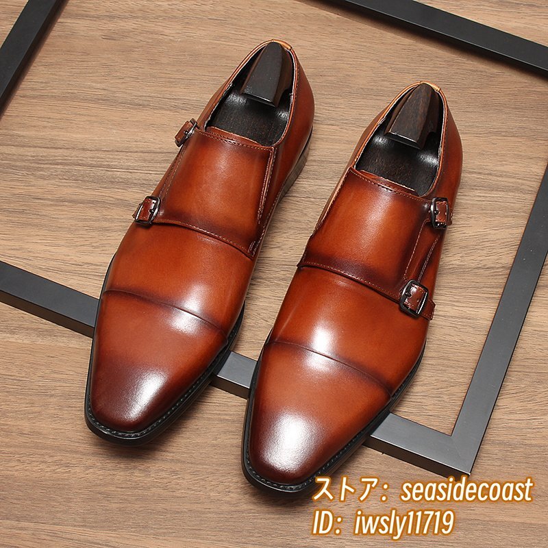 入手困難◆ダブルモンクストラップ 本革 レザーシューズ 職人手塗り上げ ビジネスシューズ メンズ 牛革 紳士靴 革靴 新品 ブラウン 26.5cm