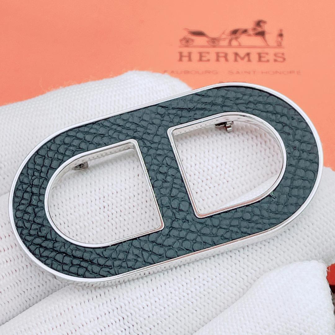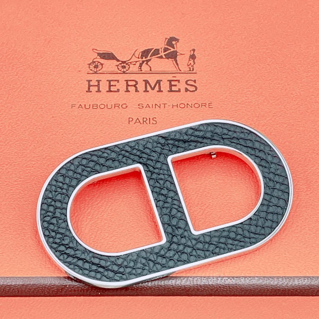 【商品名】シェーヌダンクル ブローチ レザー ブラック シルバー 保護シート付き ブランド