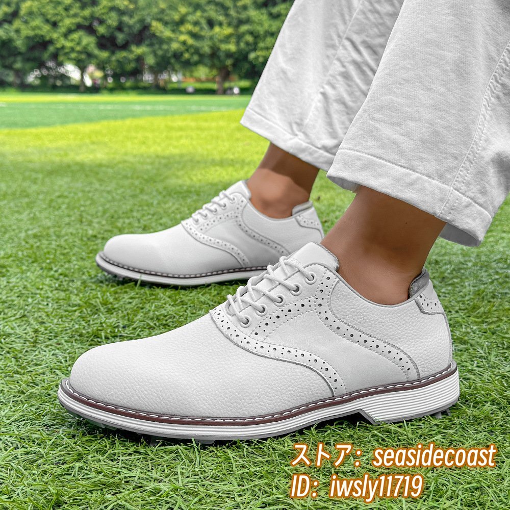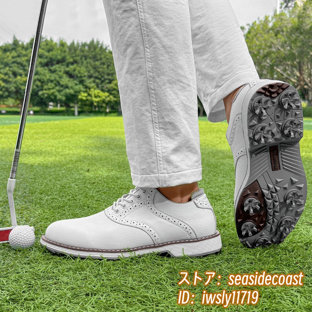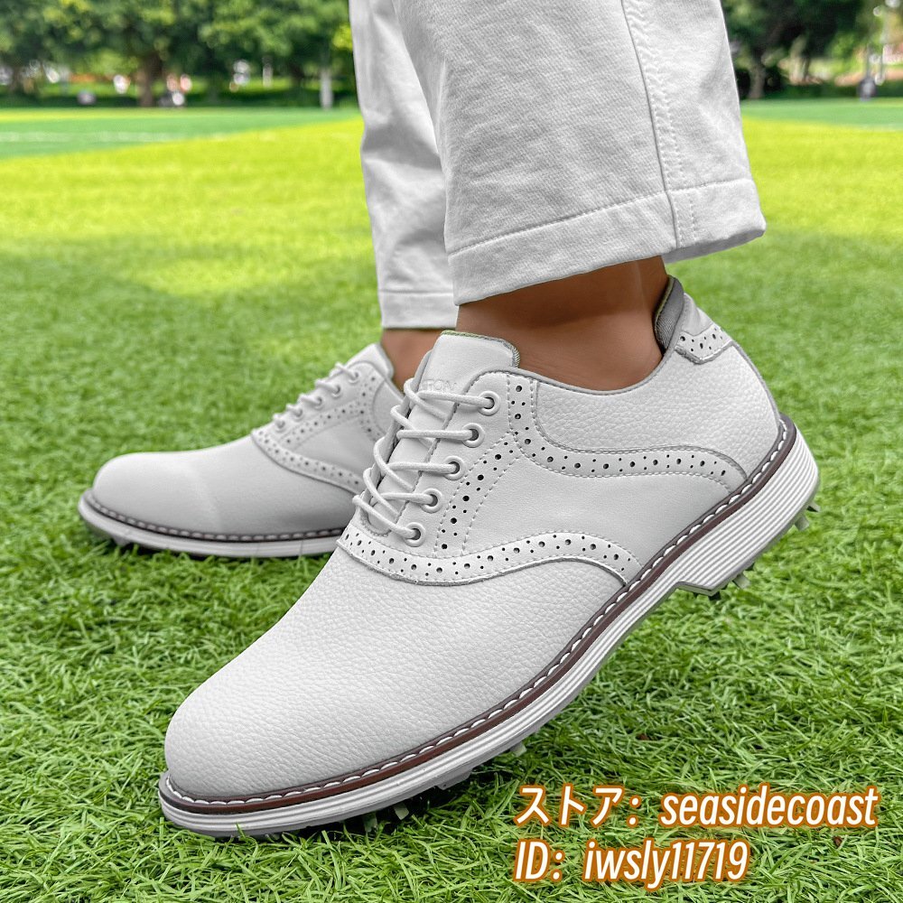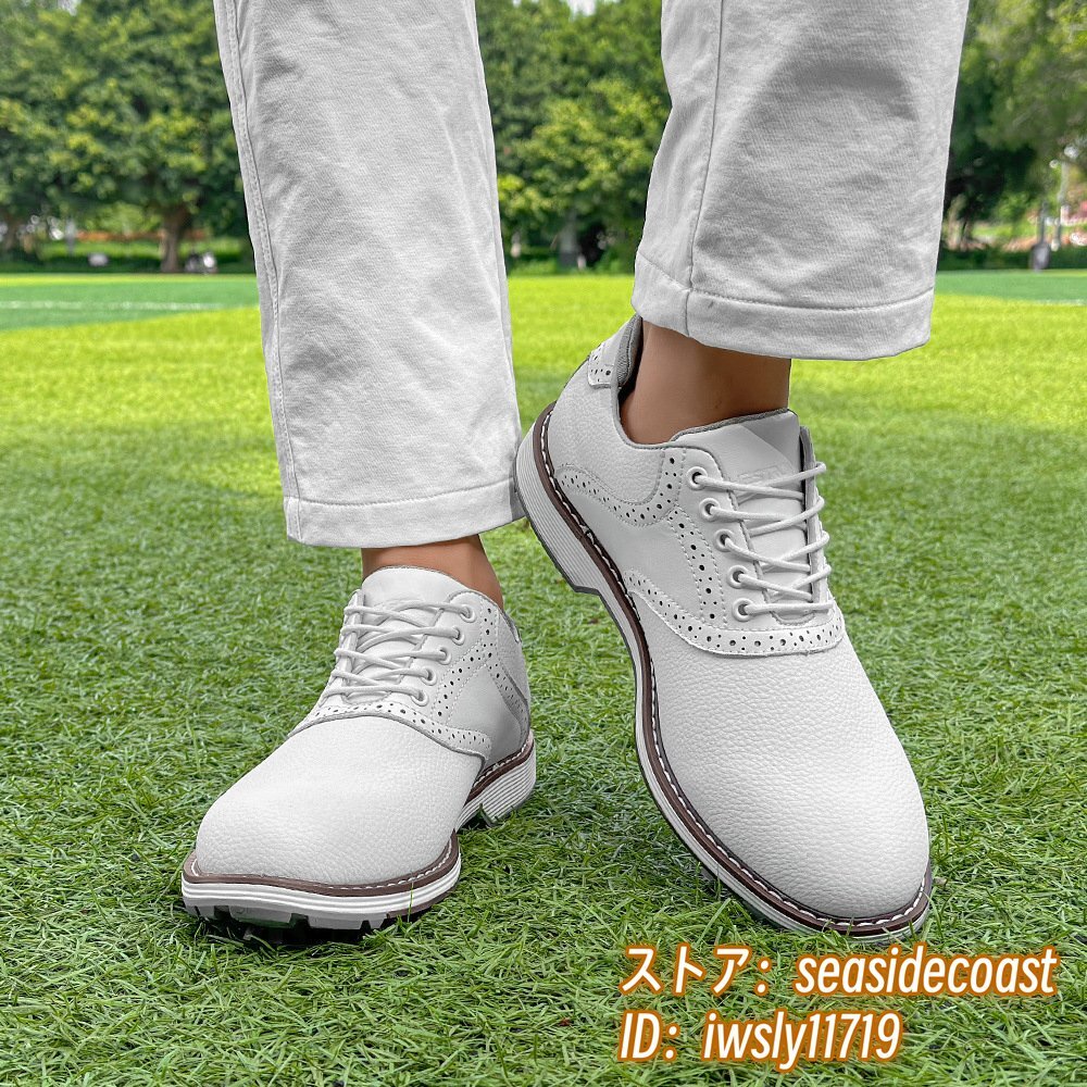 高級品◆ゴルフシューズ メンズ 切替 イギリス風 スポーツシューズ 運動靴 スニーカー フィット感 超軽量 通気性 防滑防水 ホワイト 27.5cm