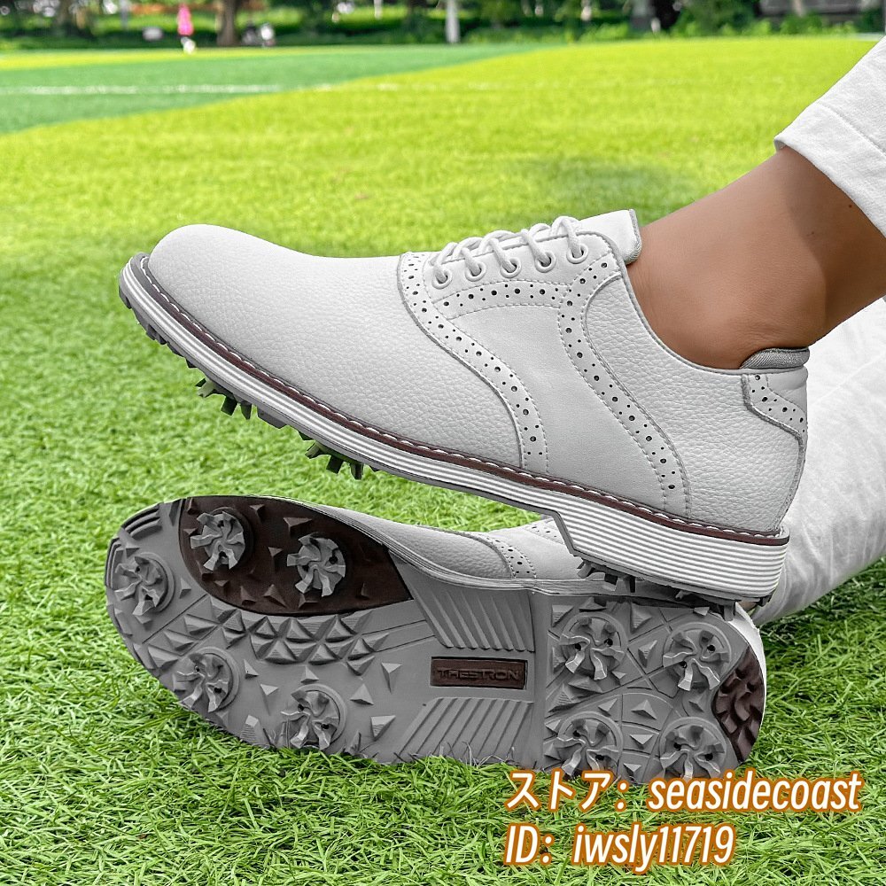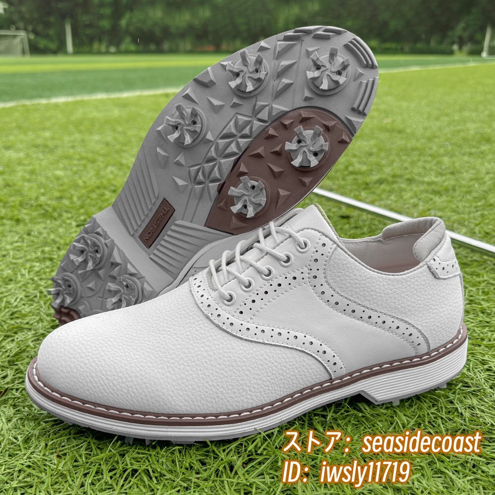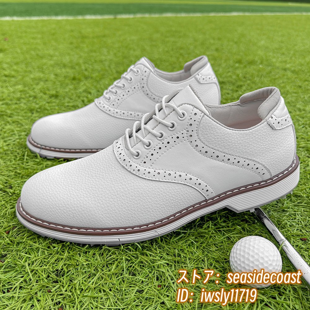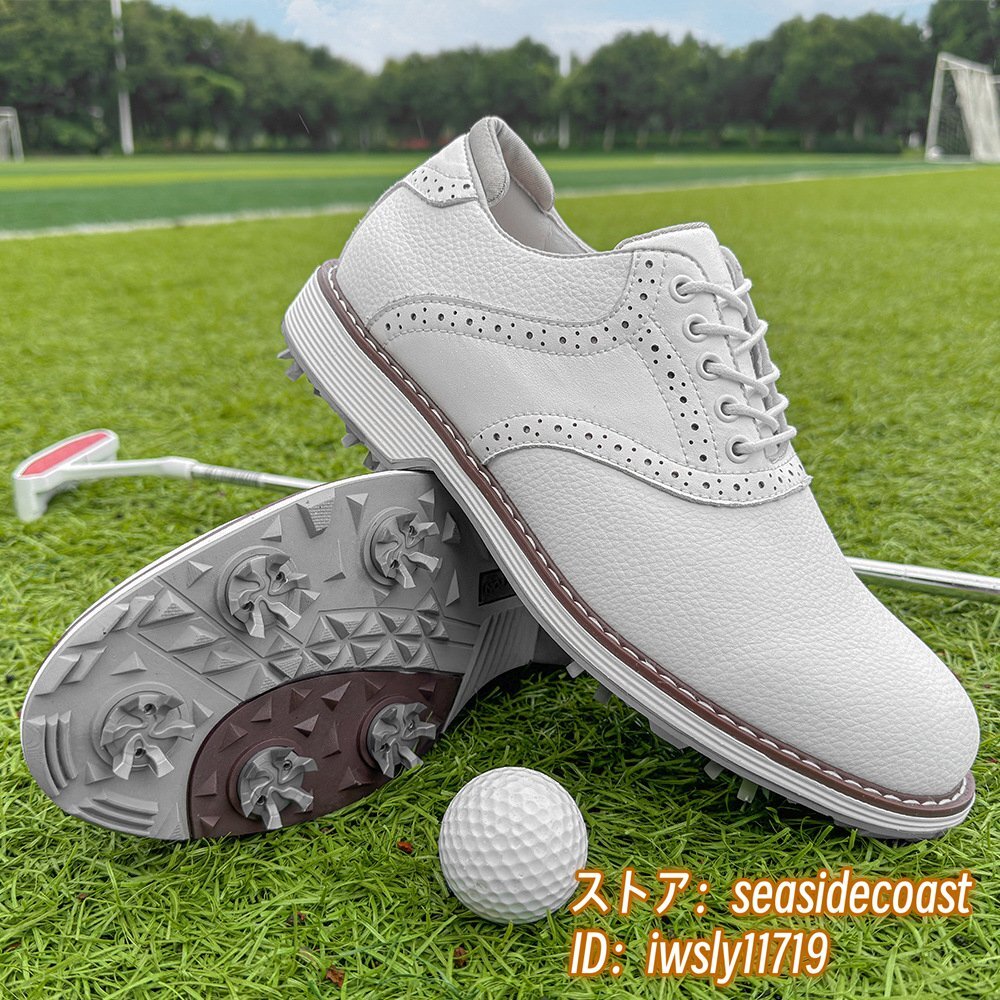 高級品◆ゴルフシューズ メンズ 切替 イギリス風 スポーツシューズ 運動靴 スニーカー フィット感 超軽量 通気性 防滑防水 ホワイト 27.5cm