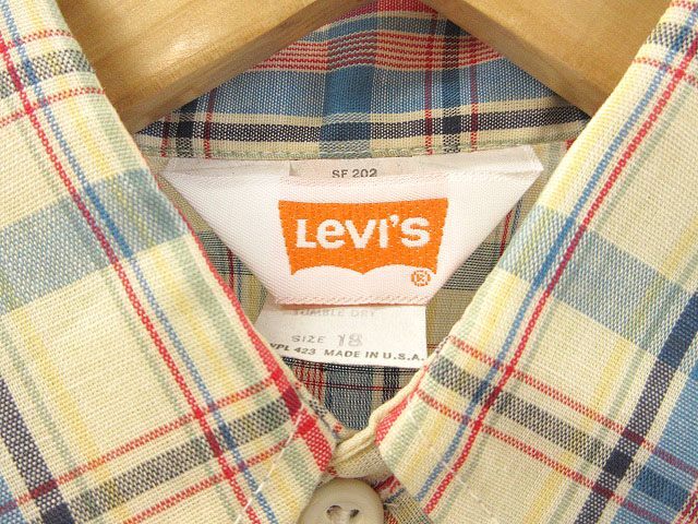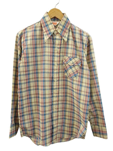 リーバイス Levi's 70s USA製 チェック柄 長袖 ボタンシャツ サイズ18 アイボリー系 ヴィンテージ トップス メンズ