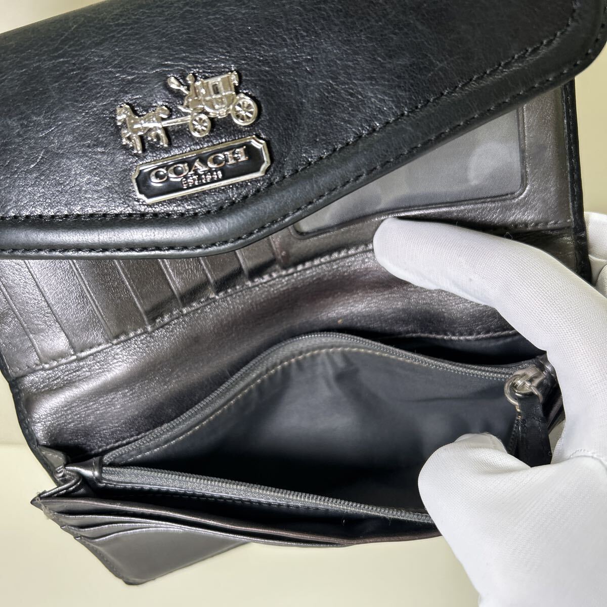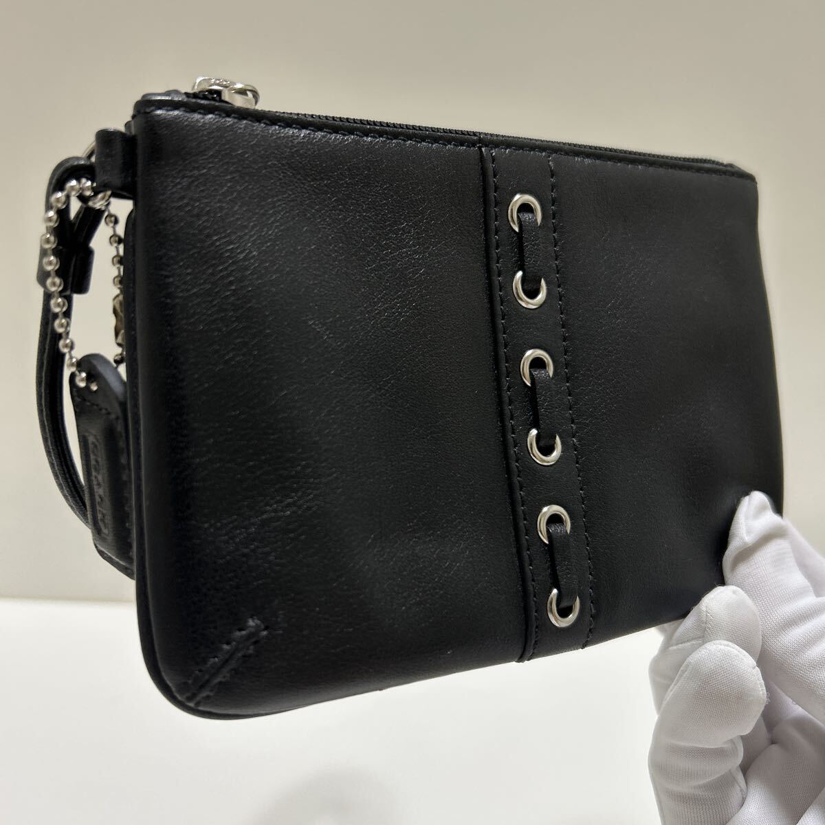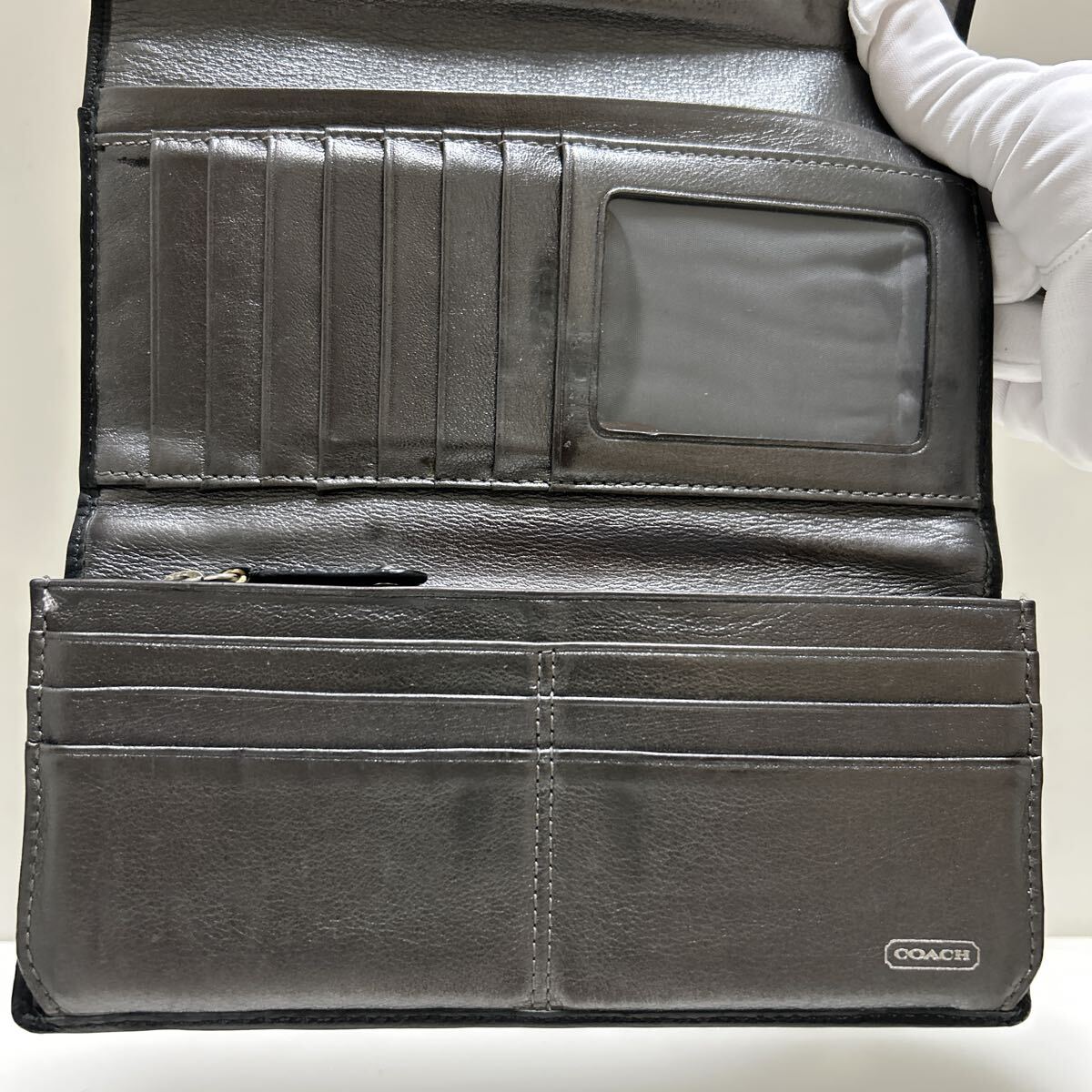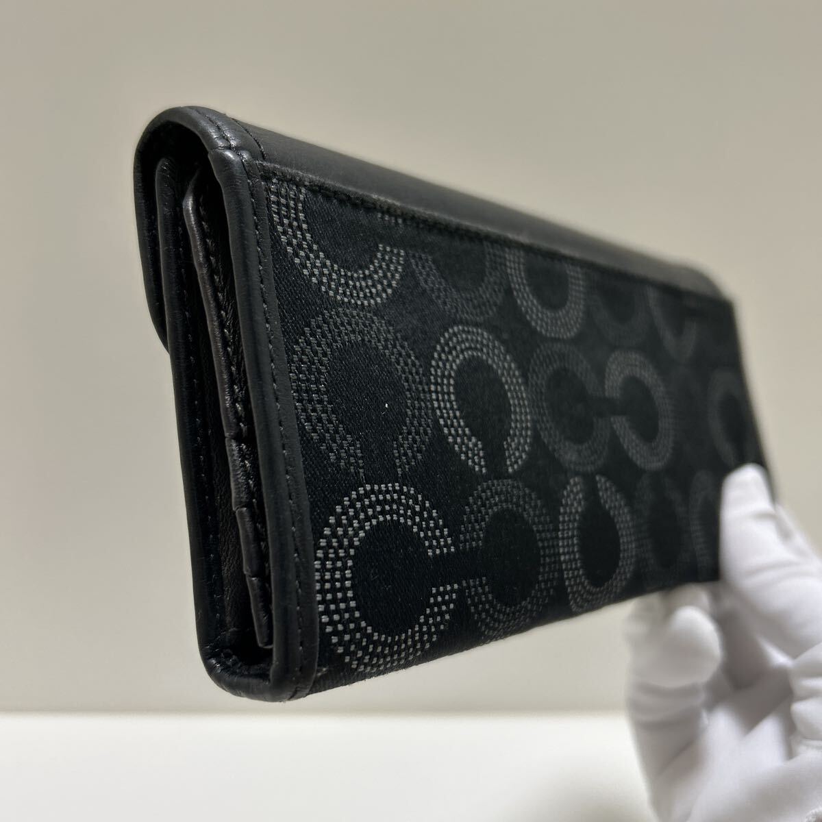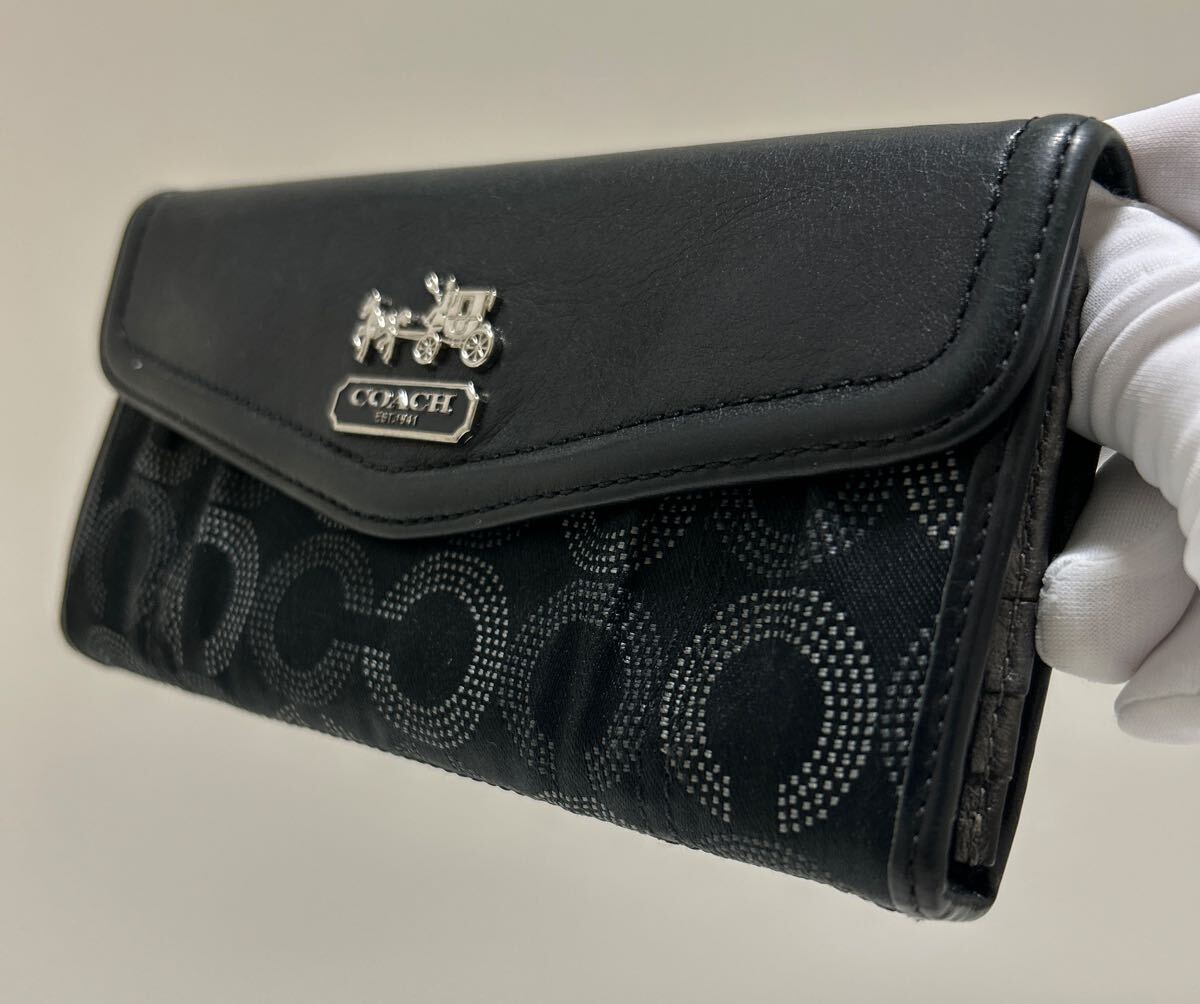 ◆COACH コーチ 三つ折り長財布&美品 リストレット ブラック系 2点SET◆ シグネチャー シルバー 金具 正規品保証【送料無料】0903