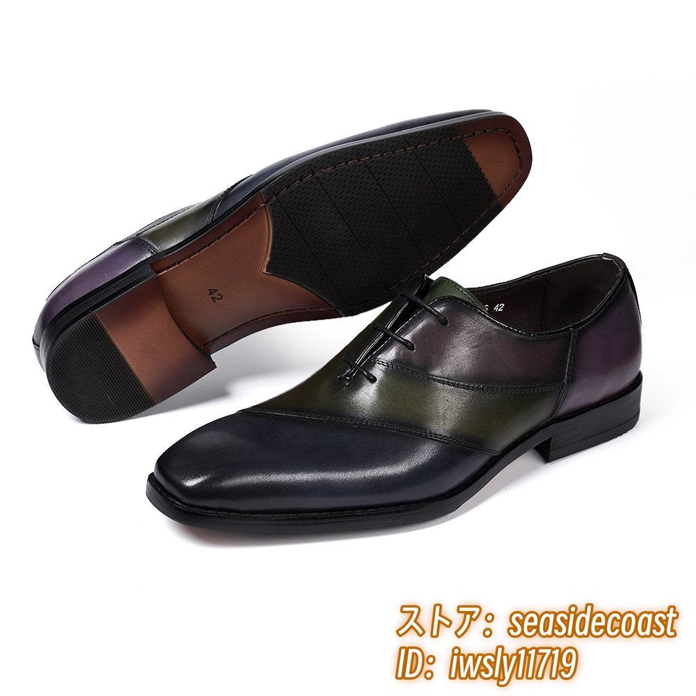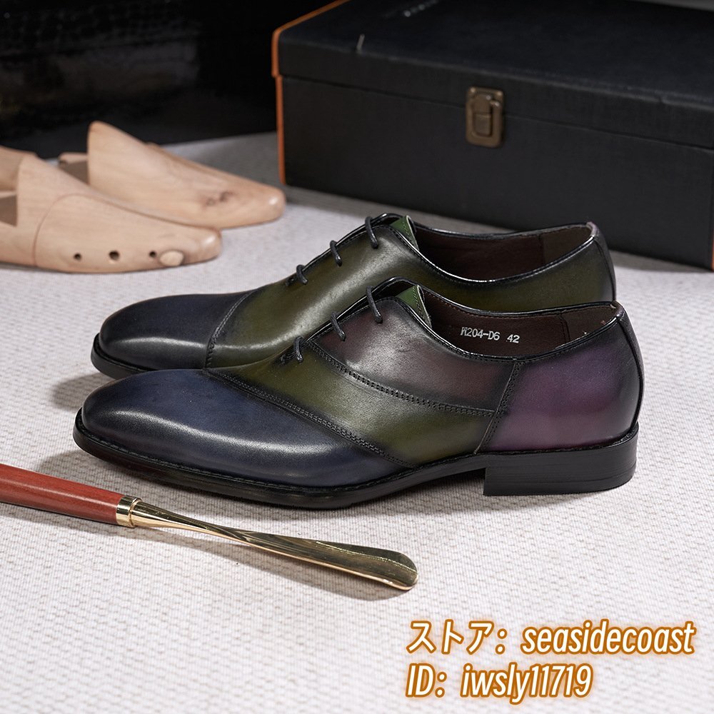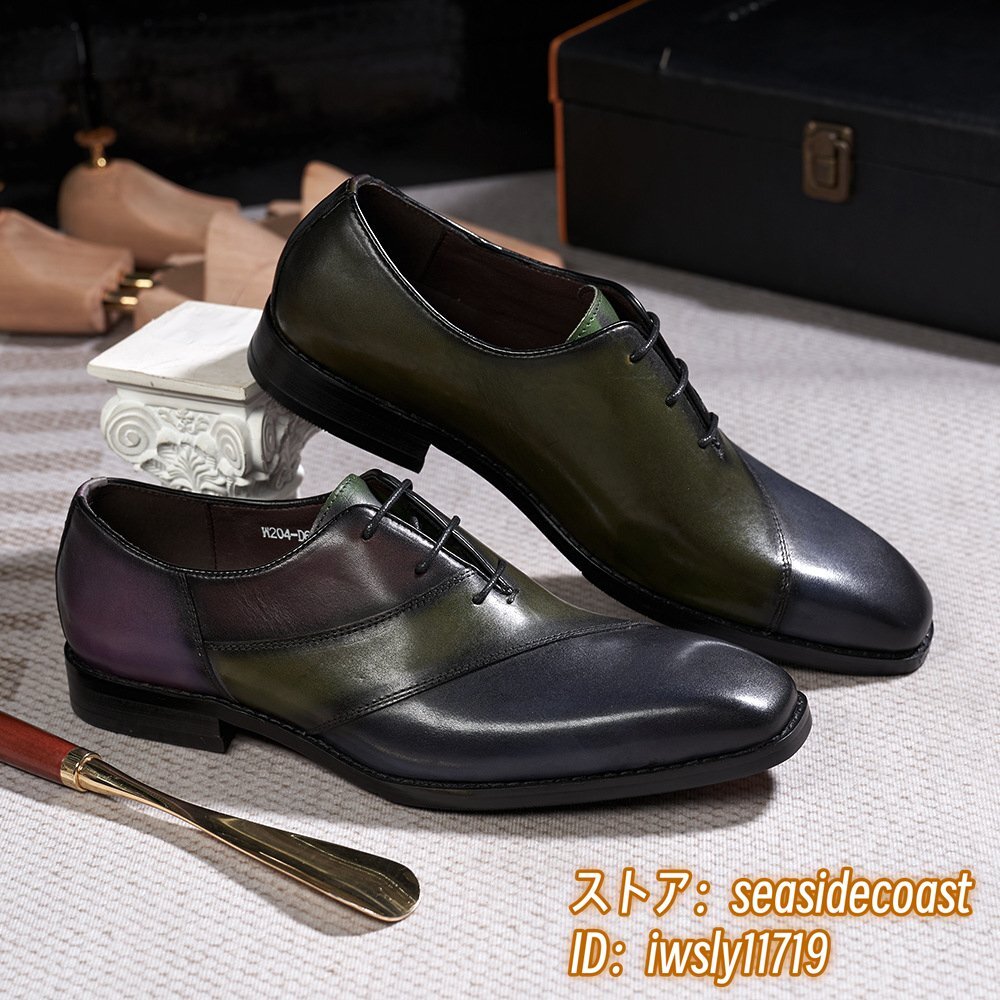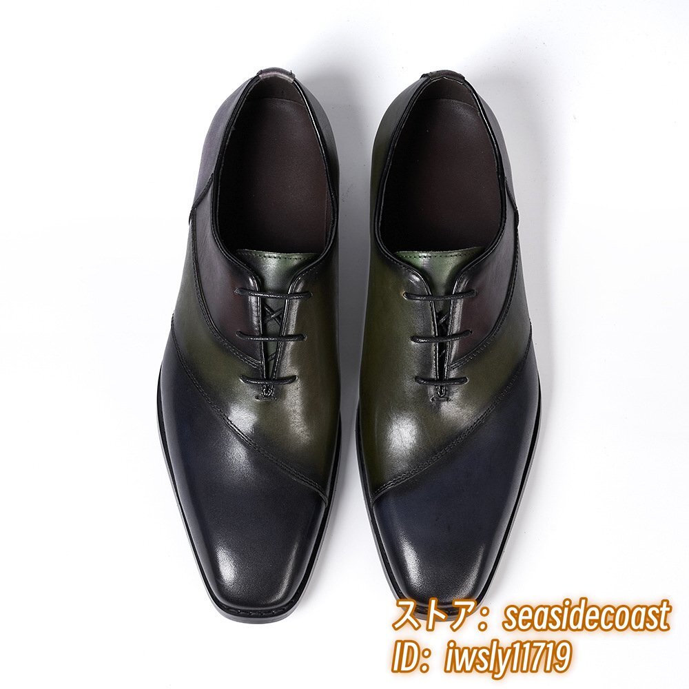 定価9万■ビジネスシューズ 新品 レザーシューズ イタリア Italia 高級 牛革 メンズ 手塗仕上げ 配色 ヴィンテージ 紳士靴 グリーン 26.5cm