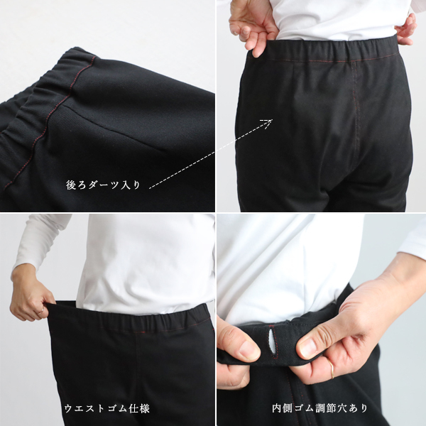 ウエストは楽々ゴム/内側にゴム調節穴。